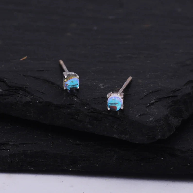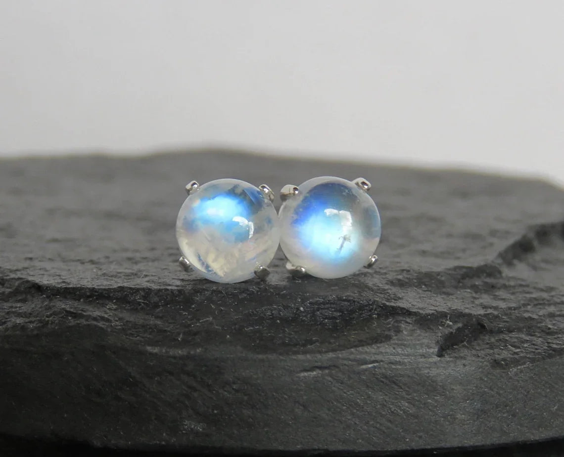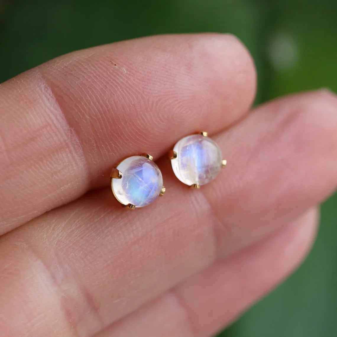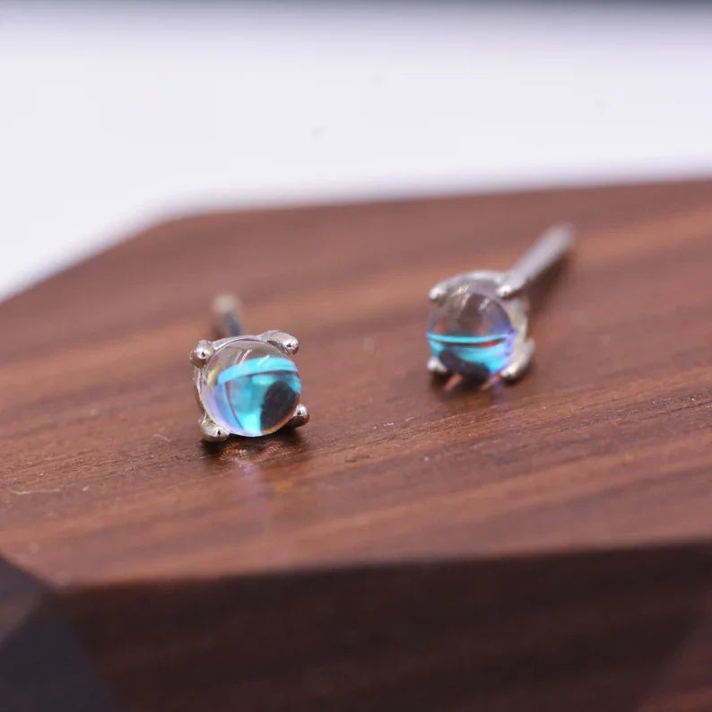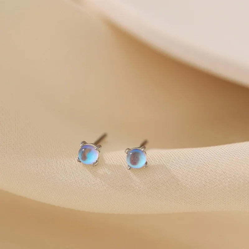 These dainty mermaid stud earrings are crafted from 925 sterling silver and feature natural moonstone crystals. Perfect for adding a touch of elegance to any outfit.
