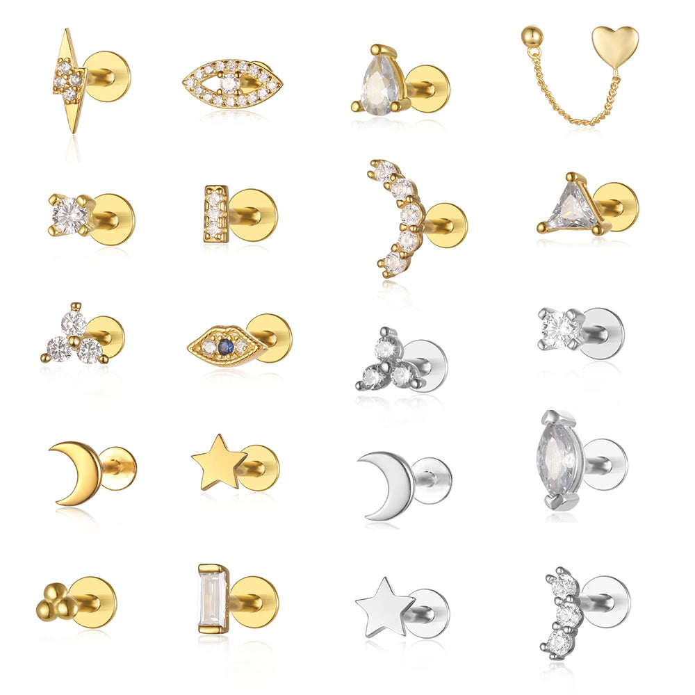 This 925 sterling silver mini ear piercing features small zircon, pearl, or feather designs. Perfect for lip, body, or ear bone jewelry.