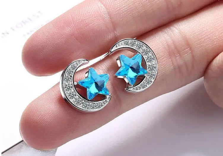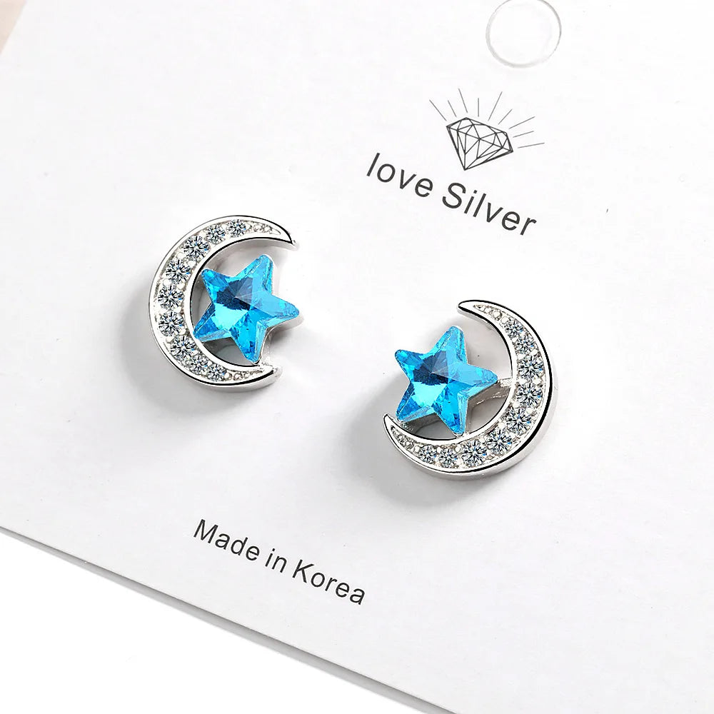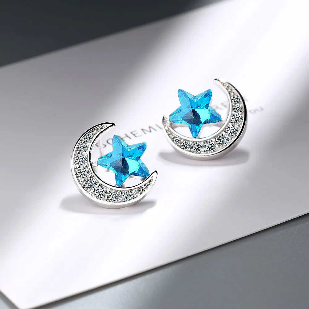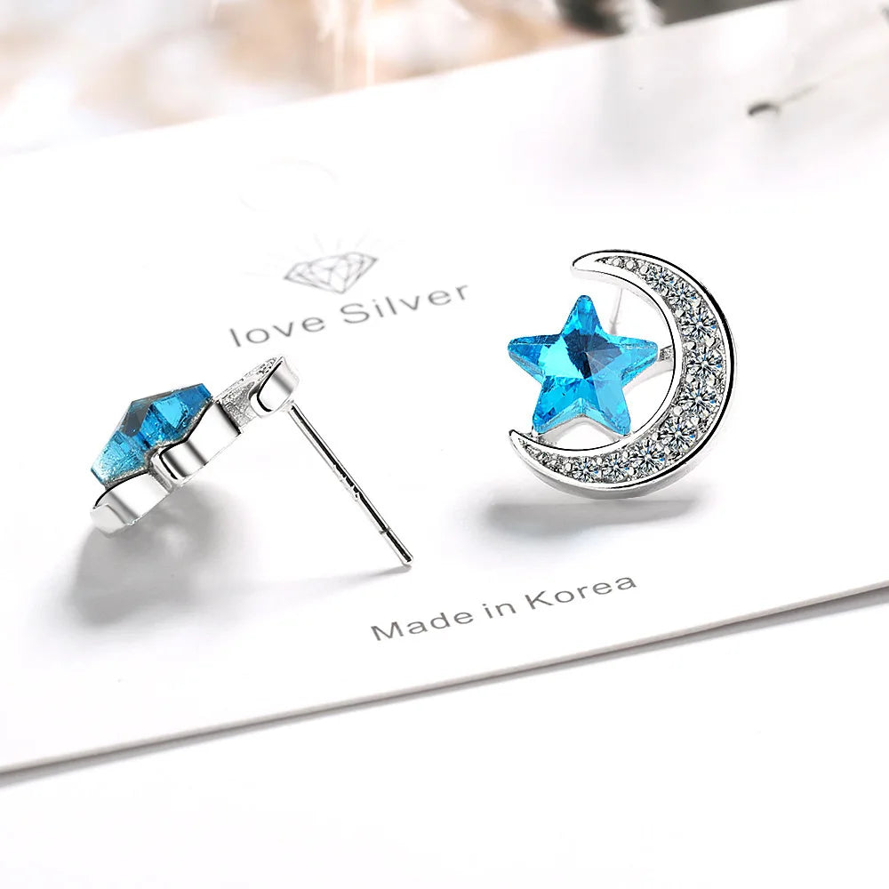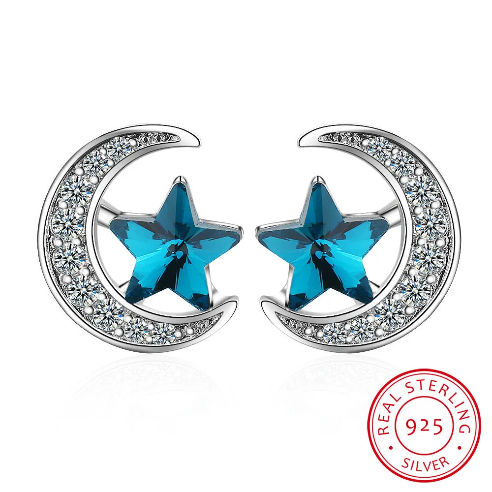 Add a touch of celestial charm with these small moon and star stud earrings crafted from 925 sterling silver. Features sparkling CZ stones for a chic look.