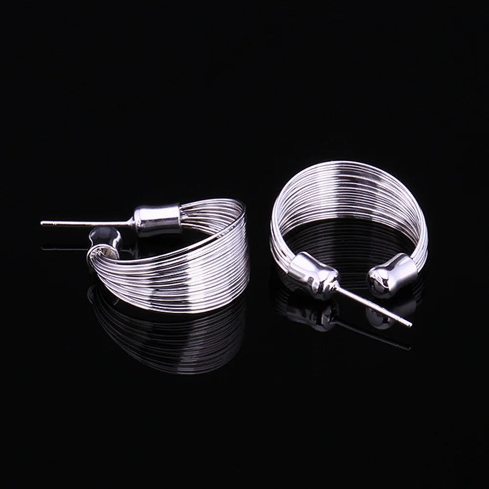 Add a touch of elegance to your look with these stunning multi-line hoop earrings. Made with high-quality 925 sterling silver, perfect for weddings, engagements, or parties.