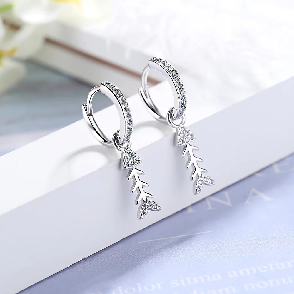 These fish bone earrings are a stylish and unique accessory, perfect for adding a touch of sparkle to any outfit. They feature CZ stones in a stackable design that is sure to stand out.
