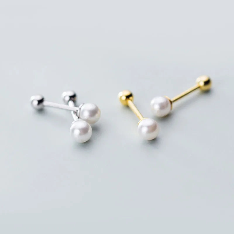 These stud earrings are made of real 925 sterling silver with round pearl beads. Perfect for parties and everyday wear. Classic and minimalist design for a timeless look.