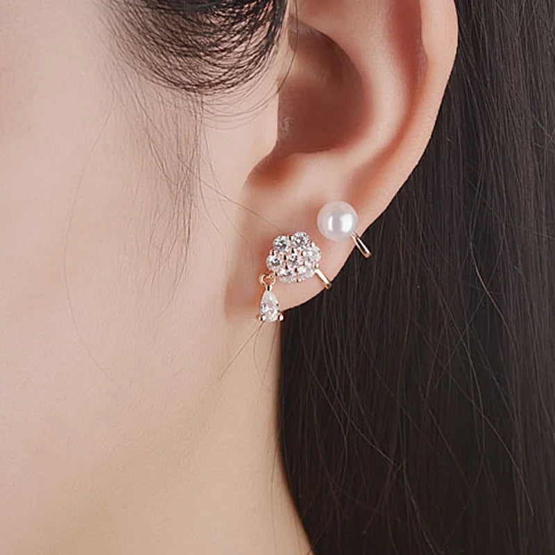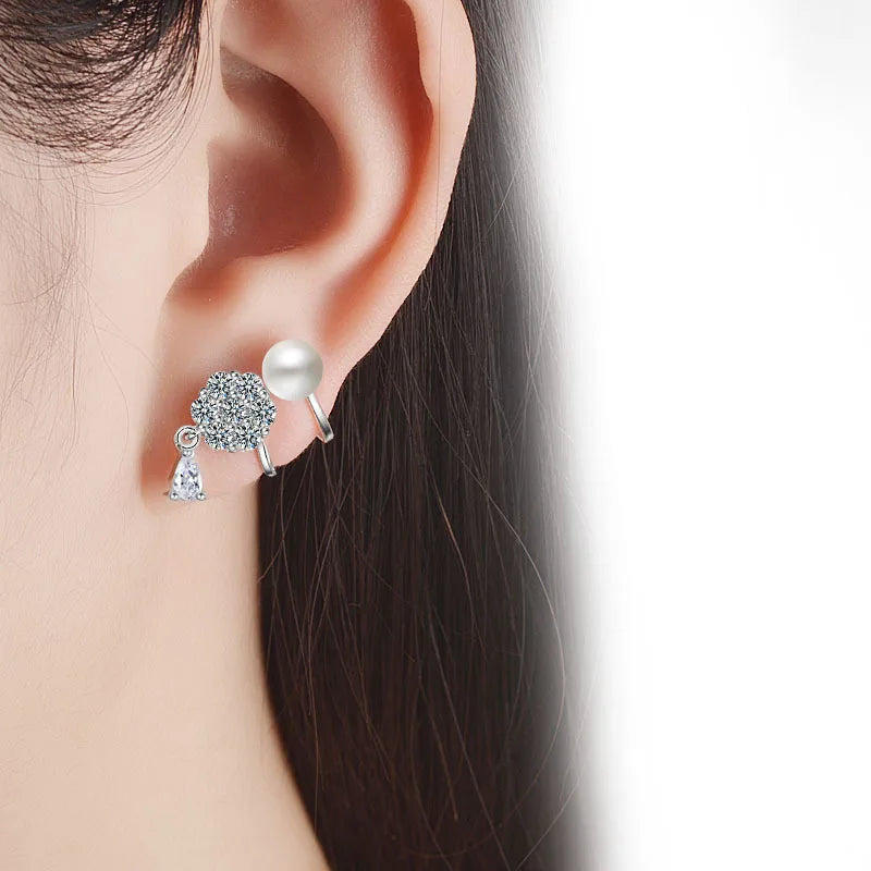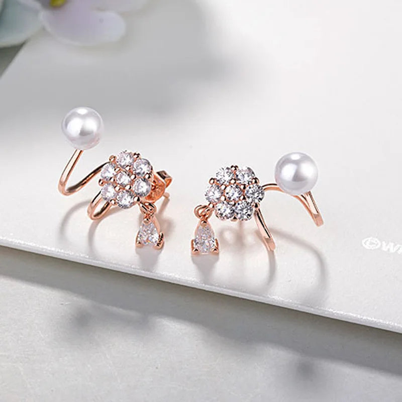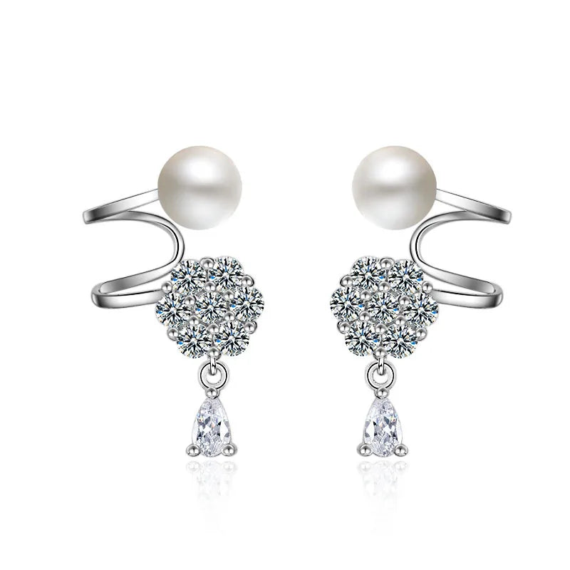 925 Silver Pearl Snowflake Stud Earrings Jewelry
