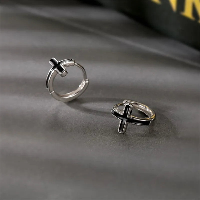 Make a bold statement with these hip hop style cross stud earrings crafted from 925 sterling silver plated with platinum. Perfect for parties and occasions.