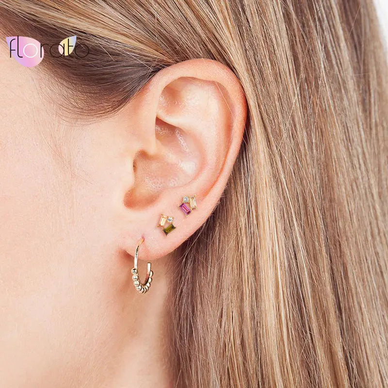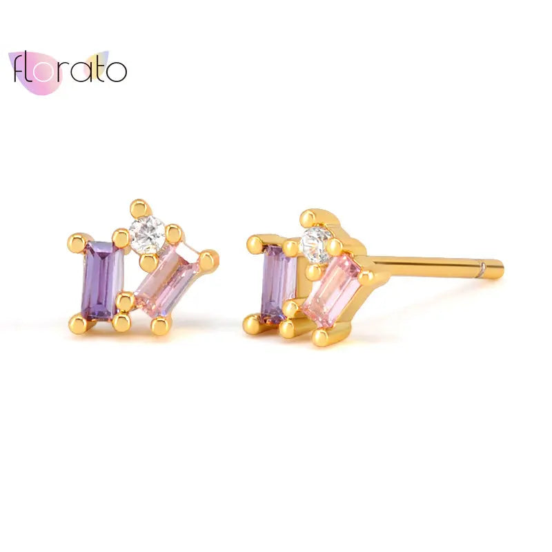Add a pop of color and sparkle to your look with these stunning stud earrings. Crafted from 925 sterling silver, these earrings feature purple and olive colored cubic zirconia stones set in a geometric square design. Perfect for adding a touch of elegance to any outfit, these earrings are ideal for weddings, parties, or everyday wear.