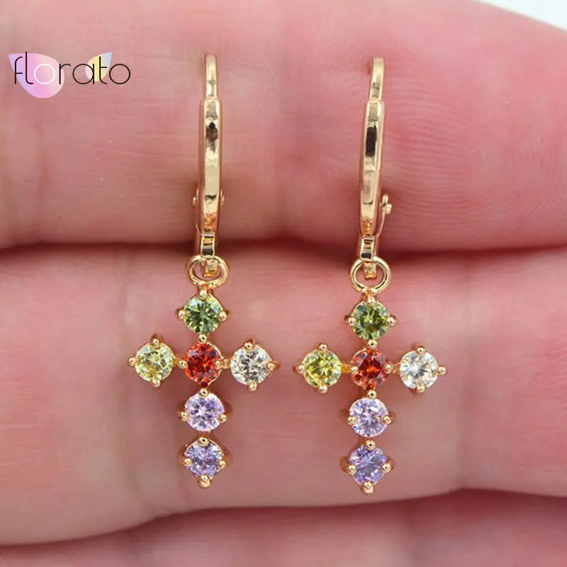 Add a pop of color and style to your look with these stunning cross hoop earrings featuring rainbow zircon stones. Made of high-quality 925 silver, these earrings are perfect for women who appreciate unique and elegant jewelry.