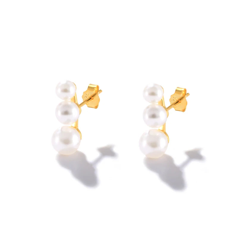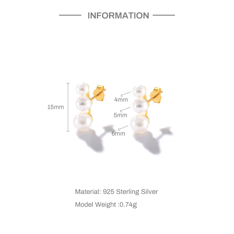 These elegant pearl stud earrings are made of 925 sterling silver, perfect for adding a touch of sophistication to any outfit. A great gift for women who appreciate classic style.
