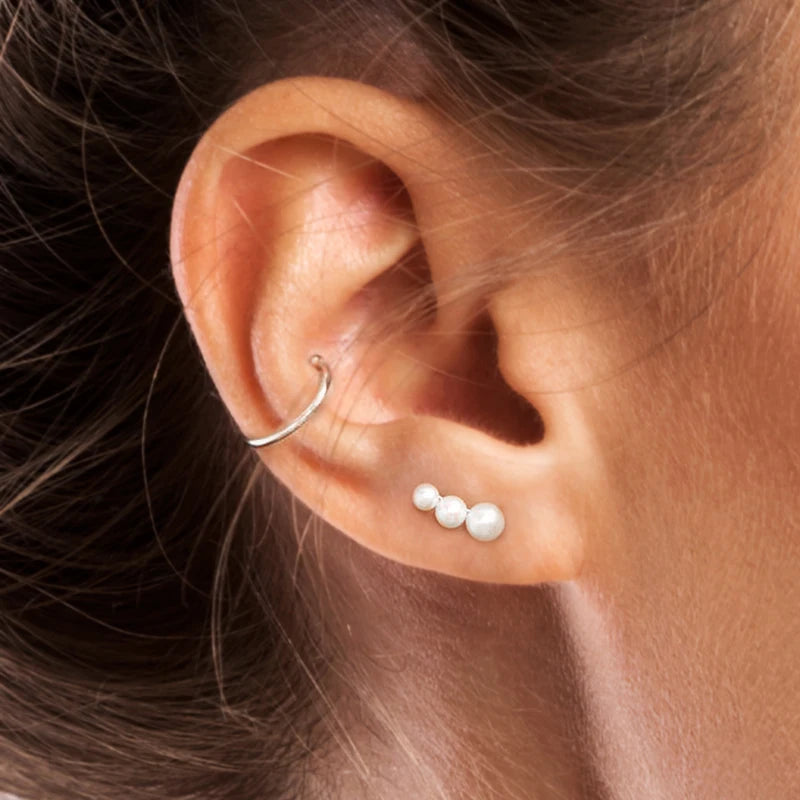 - 925 sterling silver single row pearl stud earrings