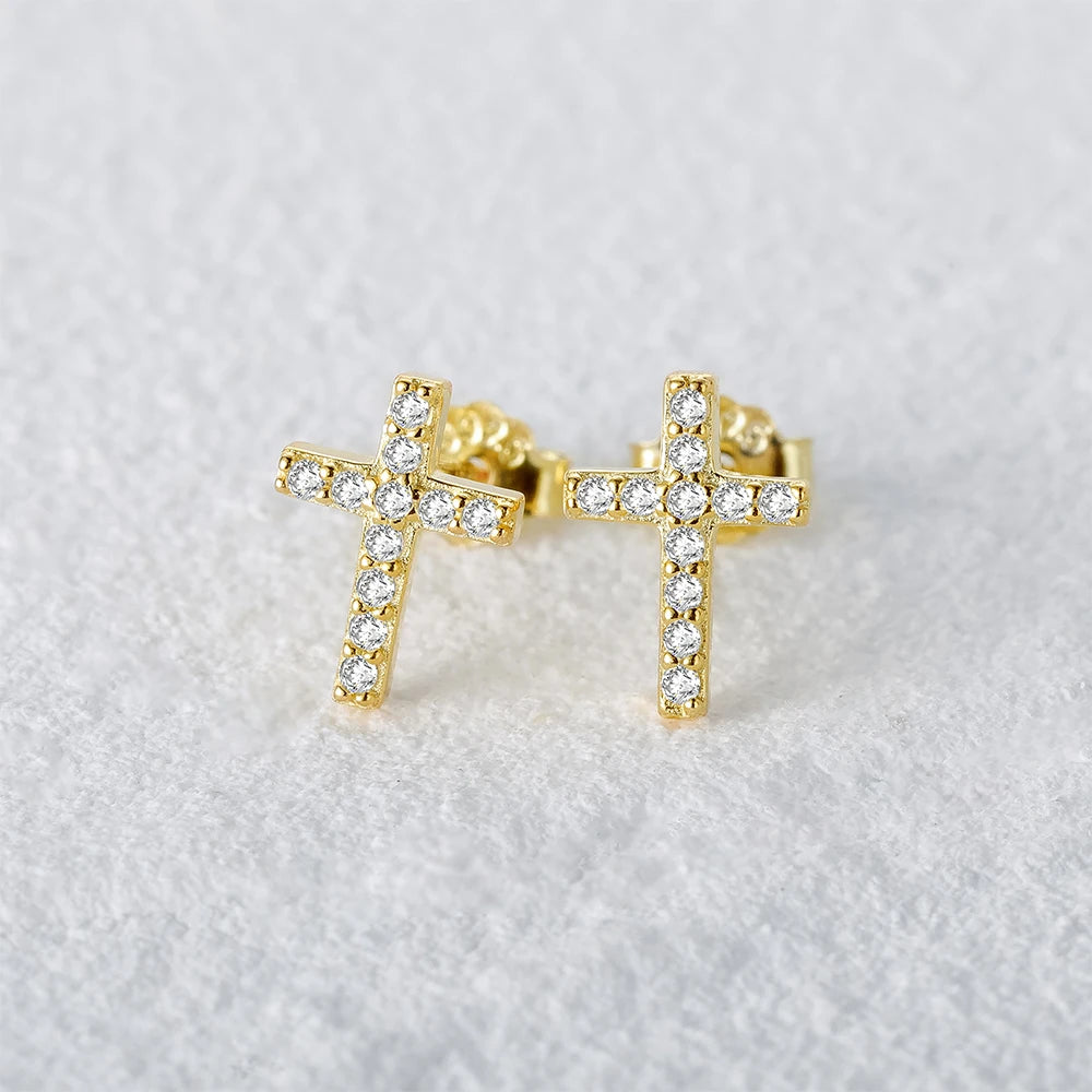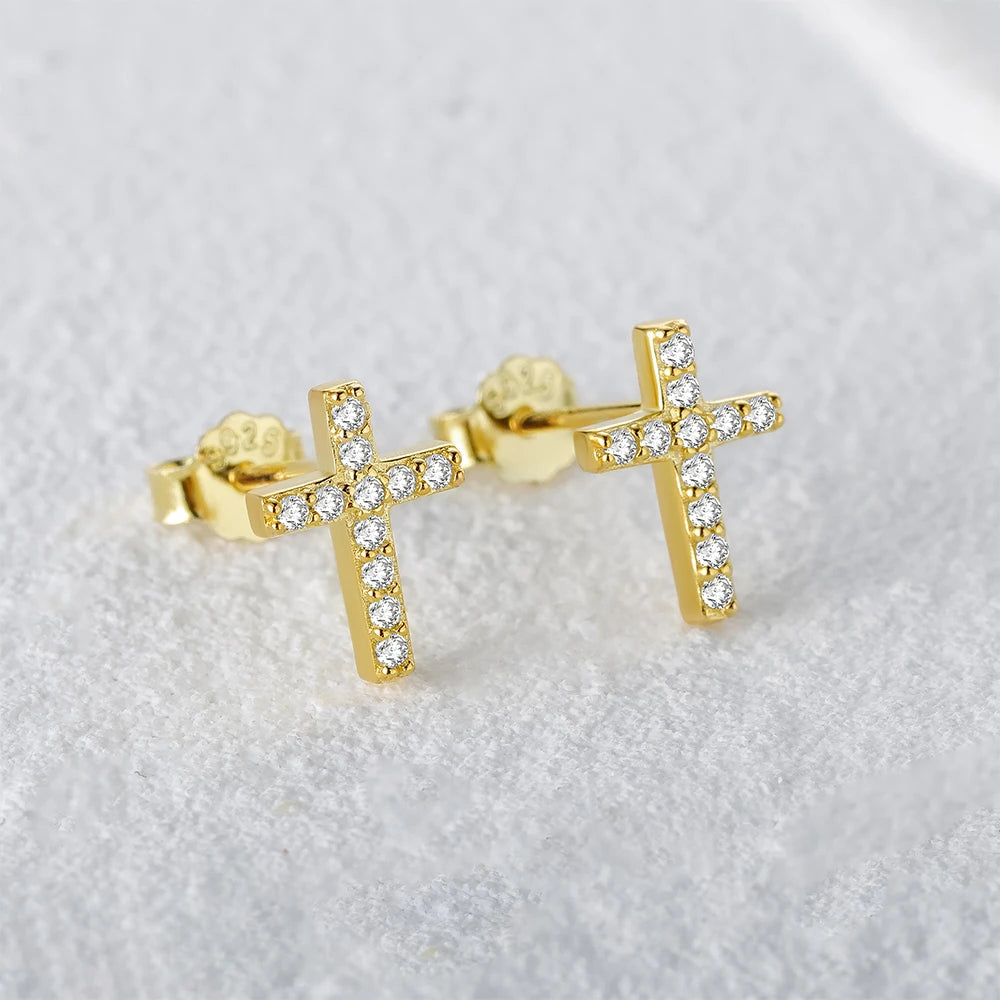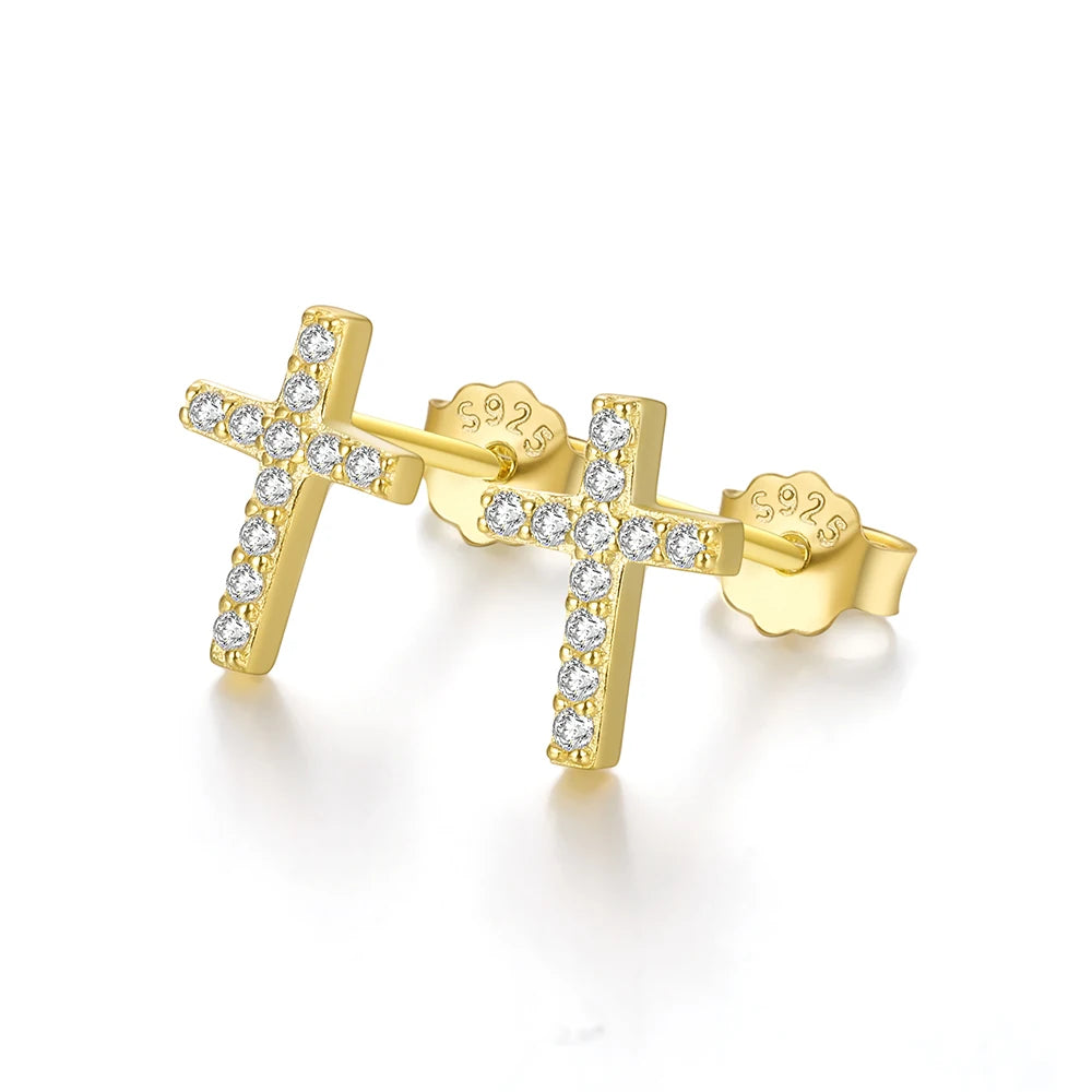 Add a touch of elegance with these classic small cross stud earrings made of 925 sterling silver. Adorned with CZ stones, these earrings are perfect for bohemian and party looks.