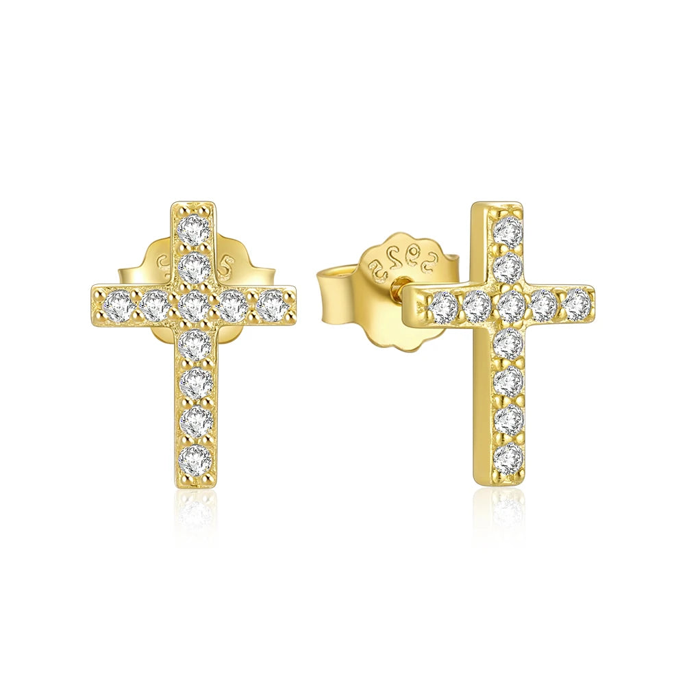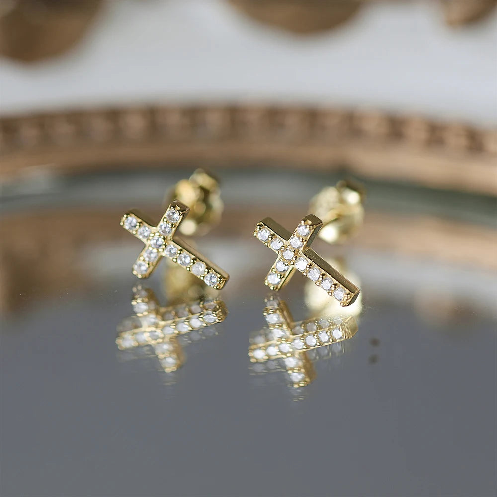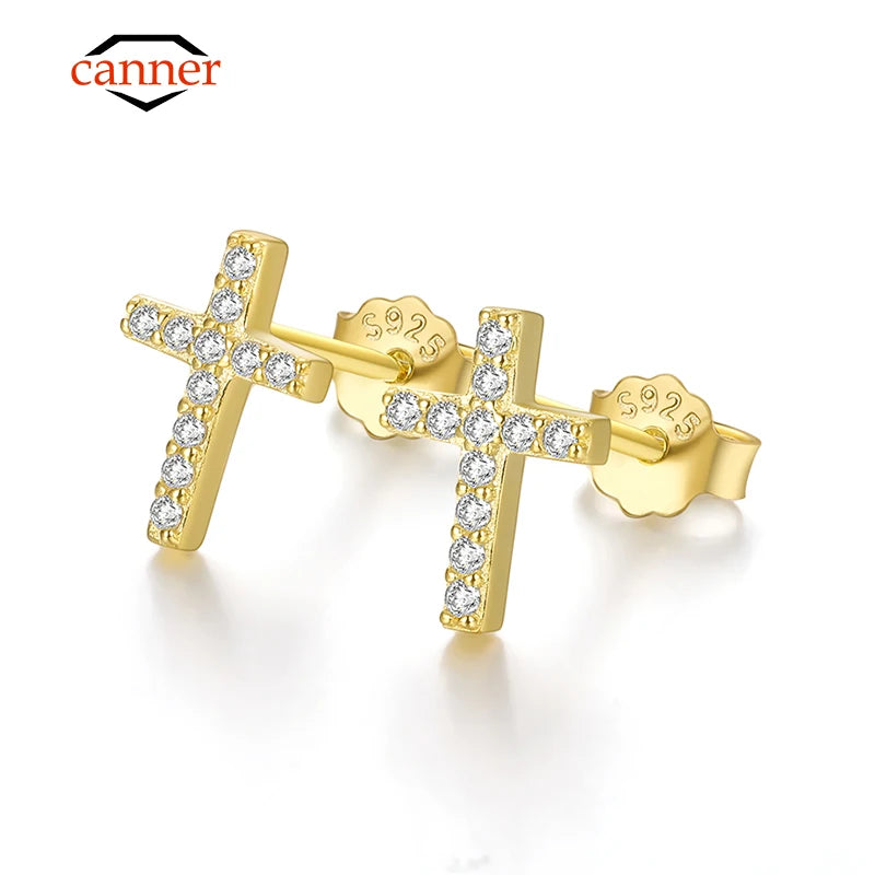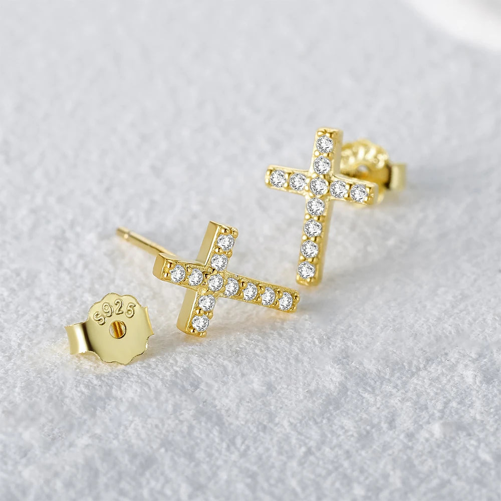 Add a touch of elegance with these classic small cross stud earrings made of 925 sterling silver. Adorned with CZ stones, these earrings are perfect for bohemian and party looks.