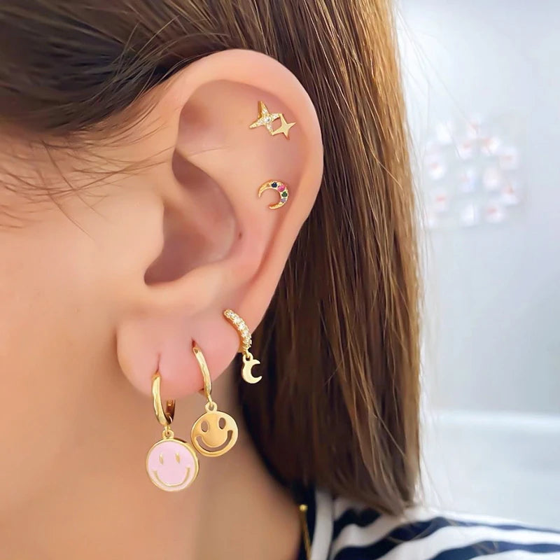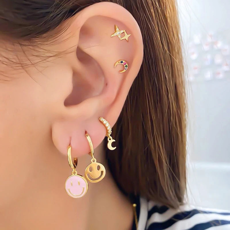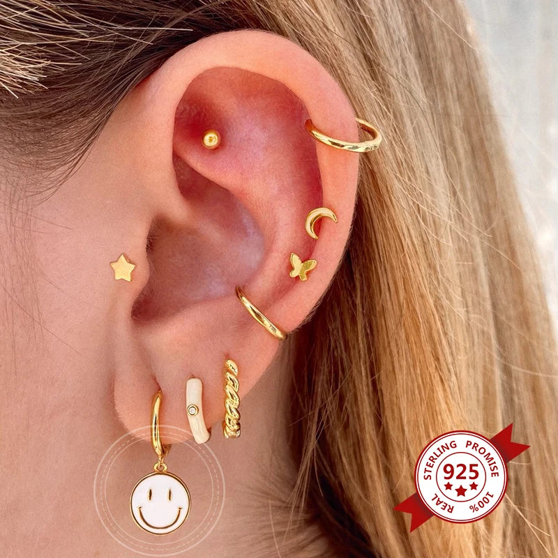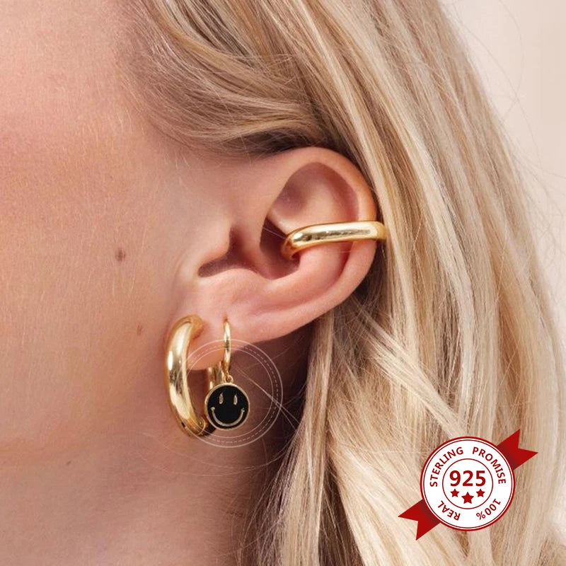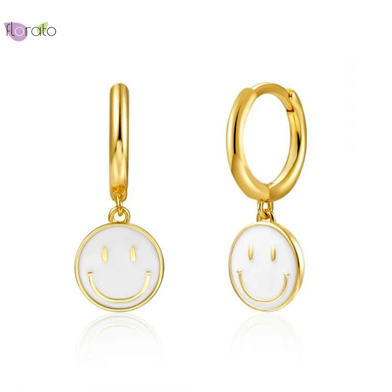 925 Silver Smile Hoop Earrings for Women Enamel Smiley Jewelry