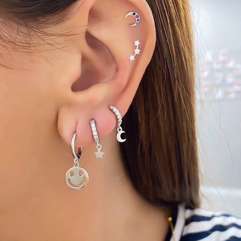 • 925 sterling silver ear needle with smile pendant