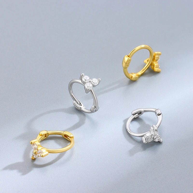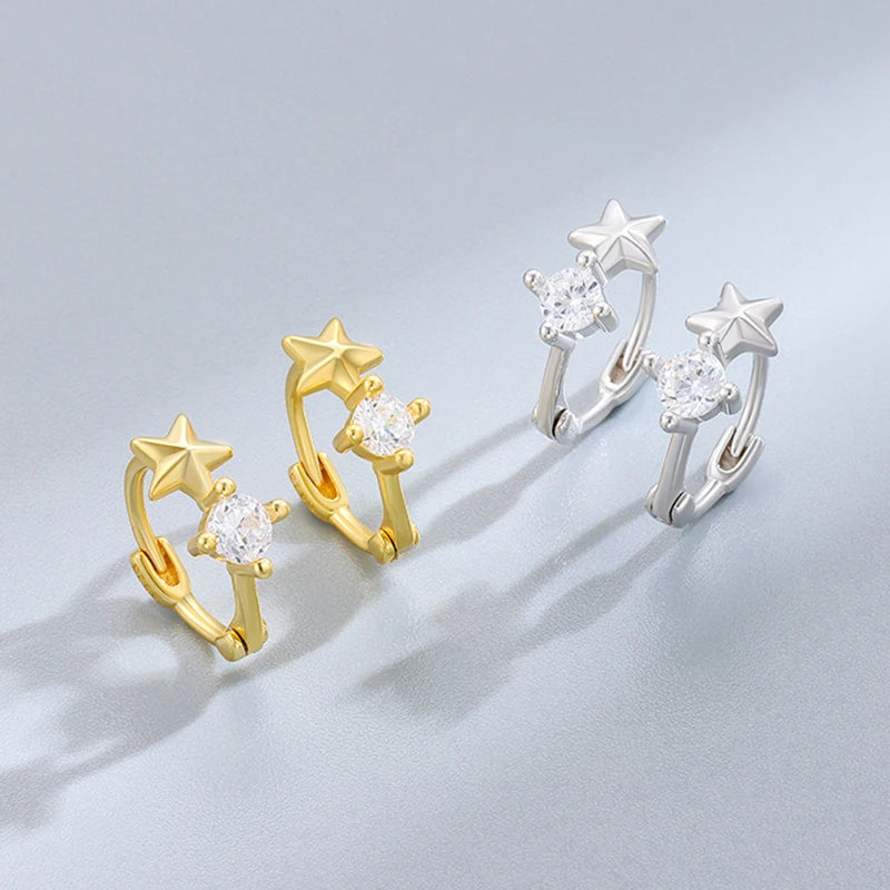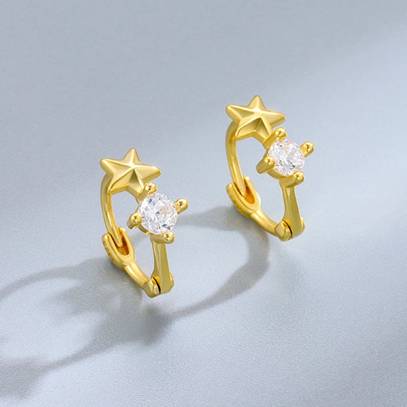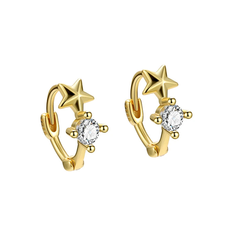 Get a touch of elegance with these stunning 925 sterling silver hoop earrings featuring five-pointed star design and sparkling diamonds. The K gold-plating adds a touch of luxury.