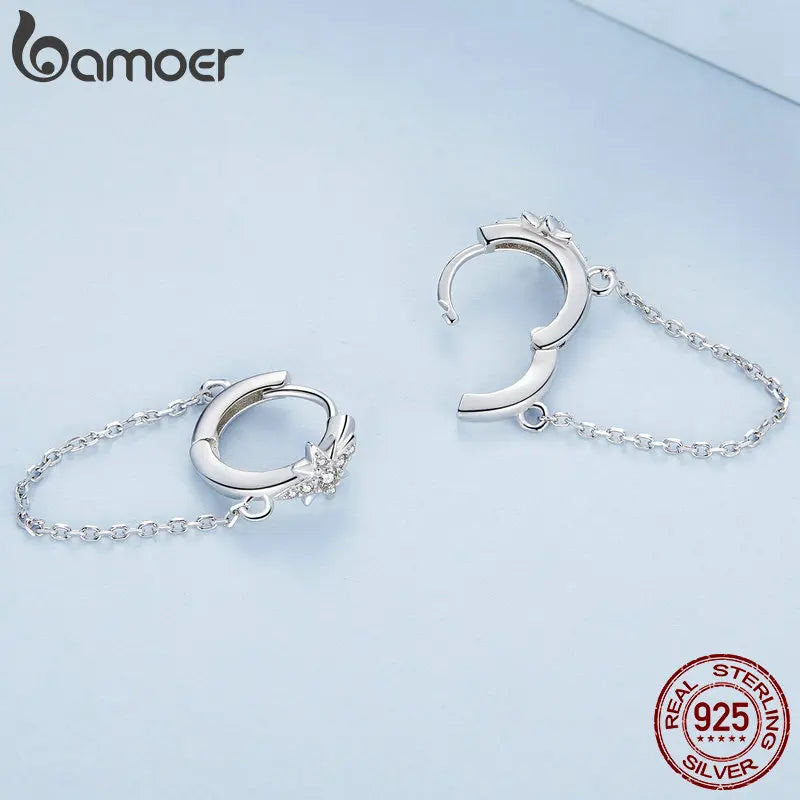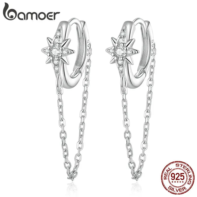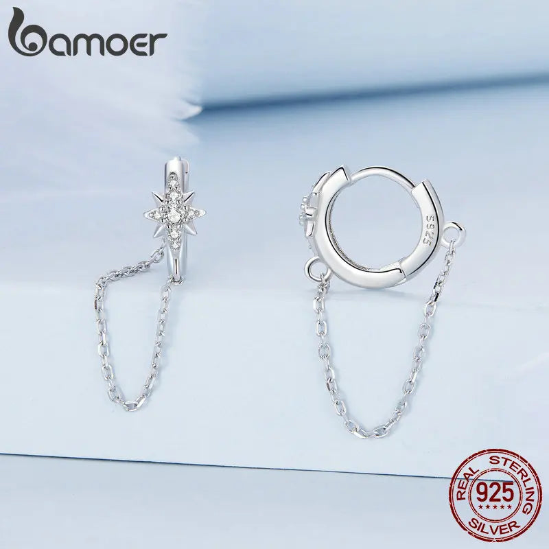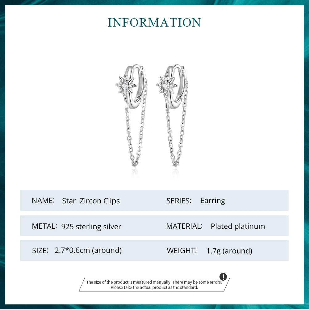 Add a touch of sparkle to your look with these stunning star hoop earrings featuring long tassel ear buckles. Made with 925 sterling silver and pave setting cubic zirconia, these earrings are perfect for any occasion.