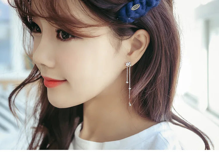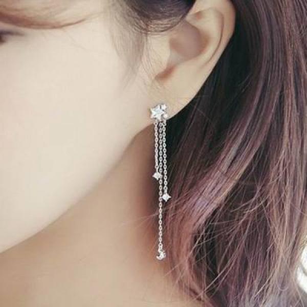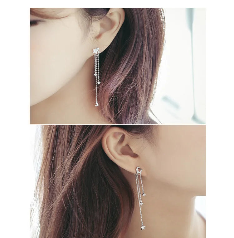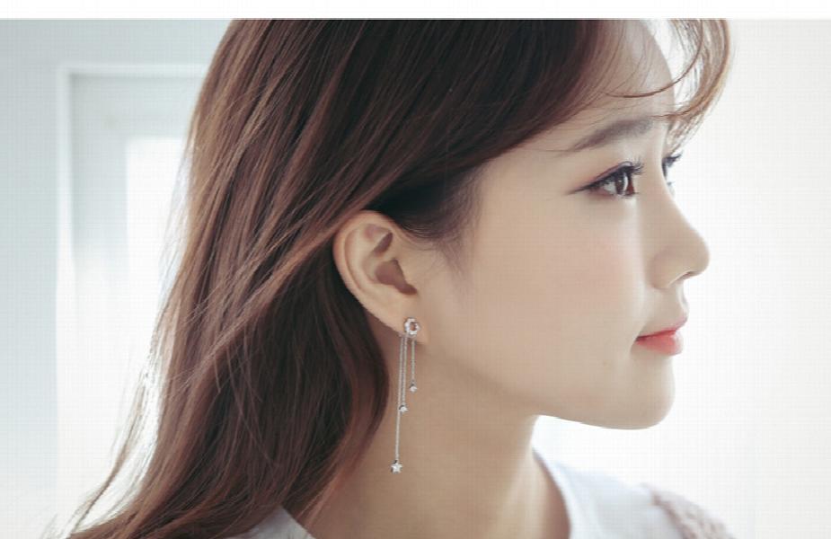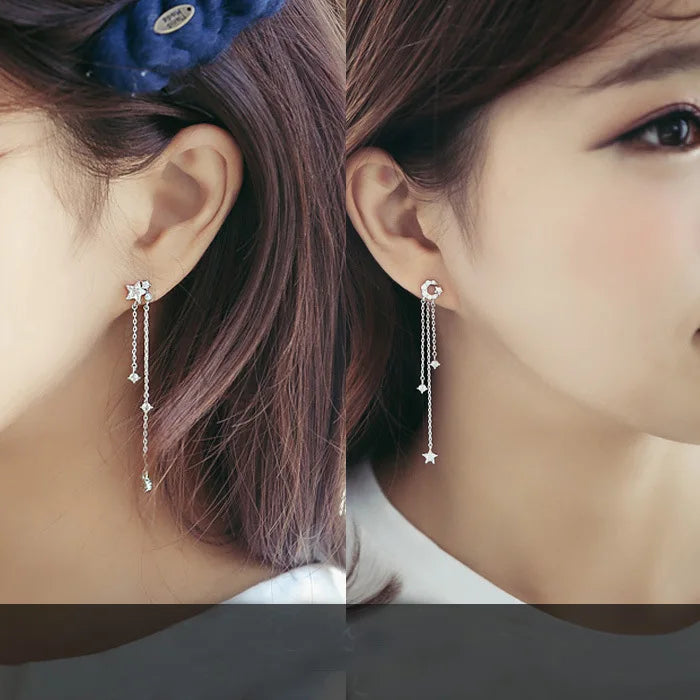 925 Silver Star Moon Brincos Stud Earrings Women Wedding Jewelry