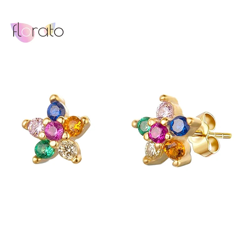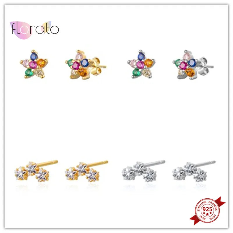 925 Silver Star Stud Earrings Colorful Crystal Five-pointed Earrings