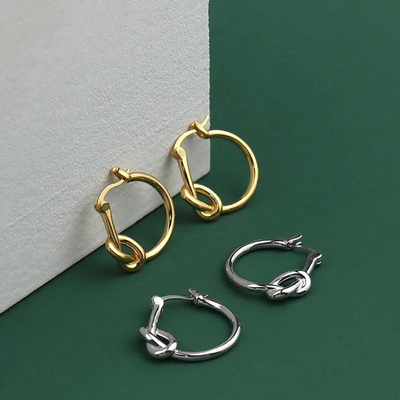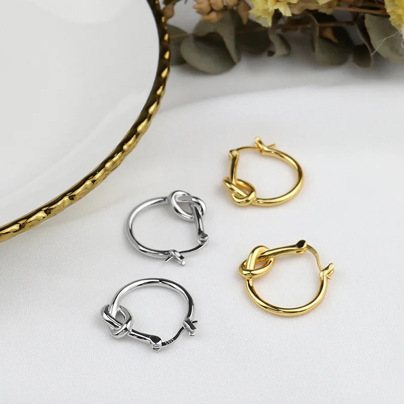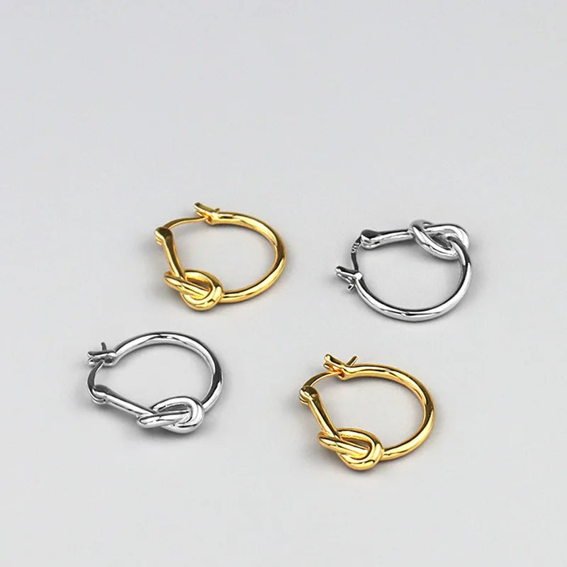 These minimalist stud earrings are made of 925 sterling silver and feature knot designs. Perfect for parties and as a gift for loved ones.