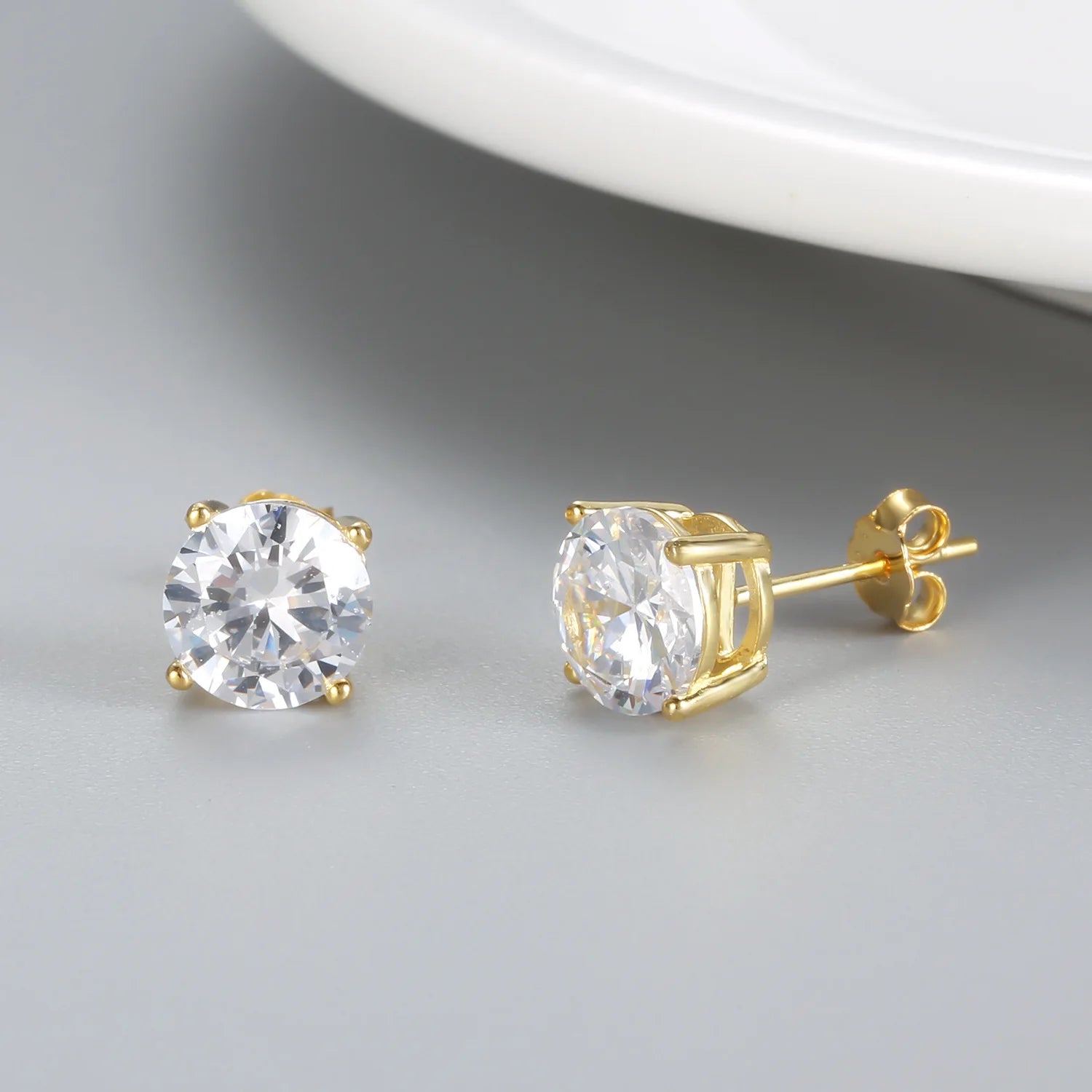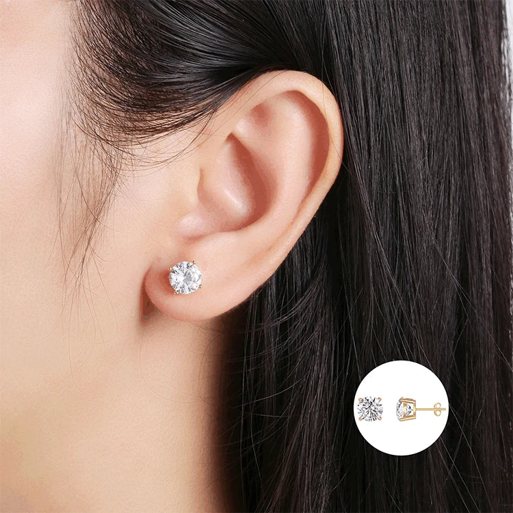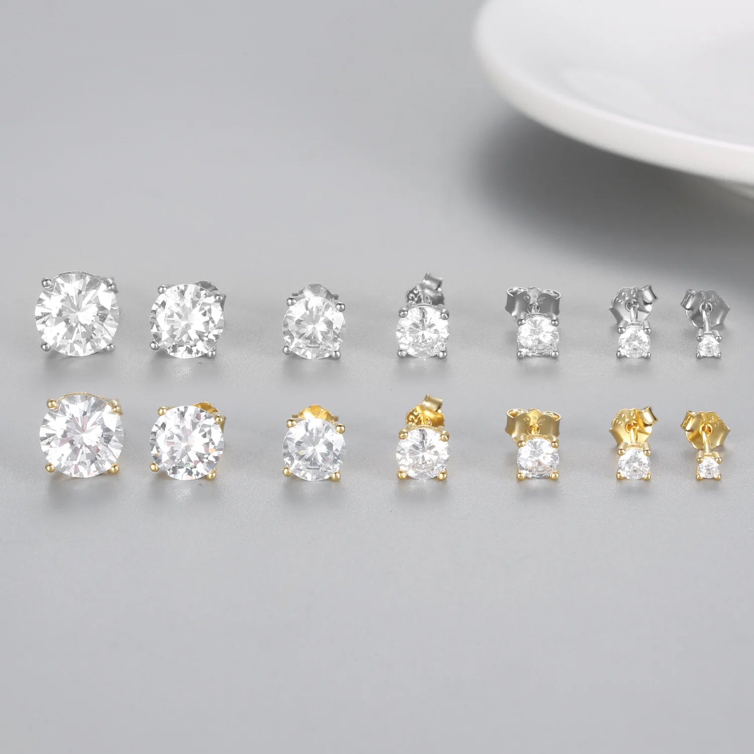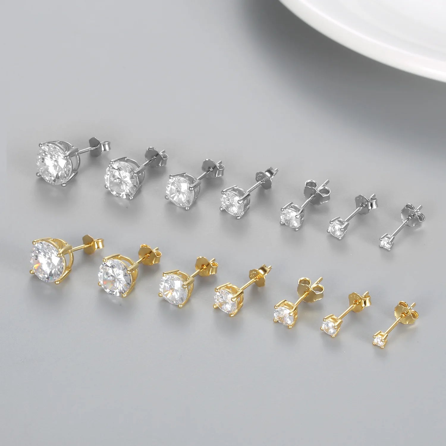 These sterling silver stud earrings feature a single grain design with four prongs holding a round zircon. Perfect for everyday wear or as a thoughtful gift.