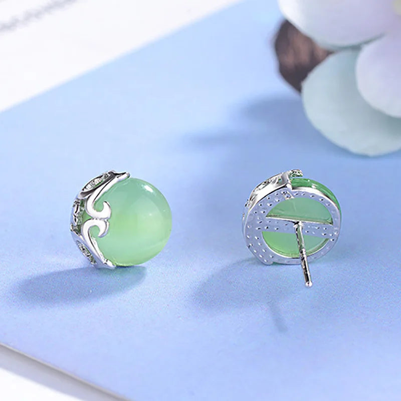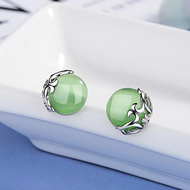 These elegant stud earrings feature round 12*12mm emerald gemstones set in 925 silver. Perfect for weddings and special occasions.