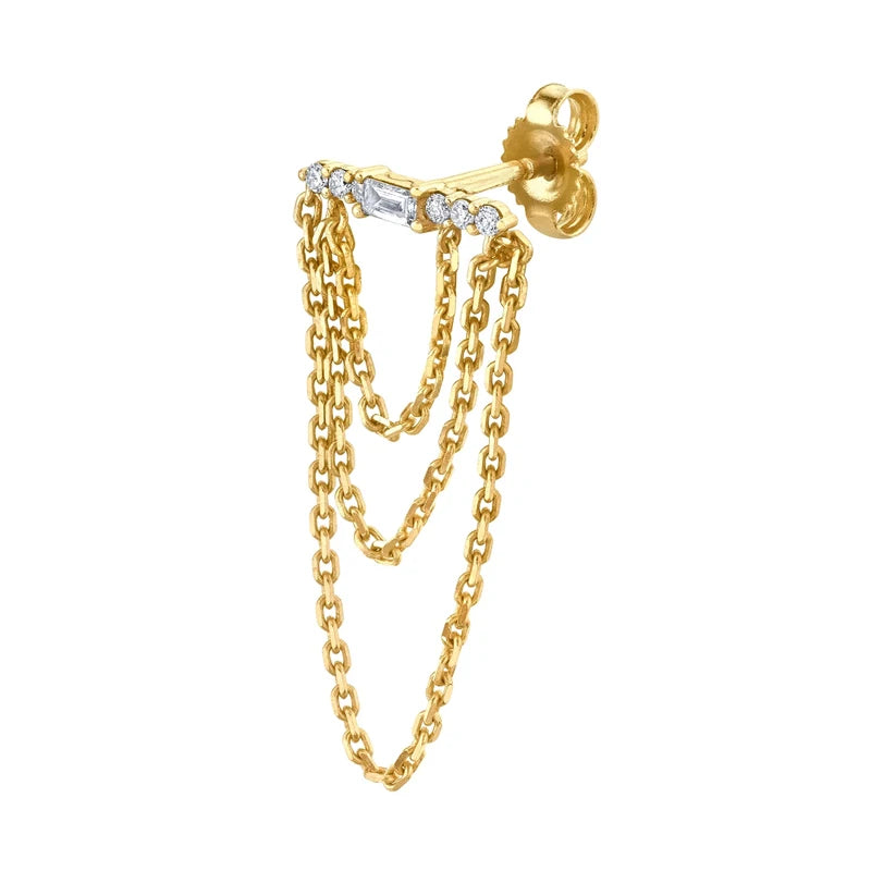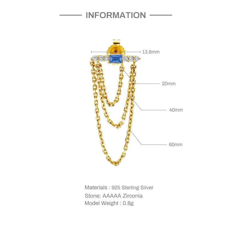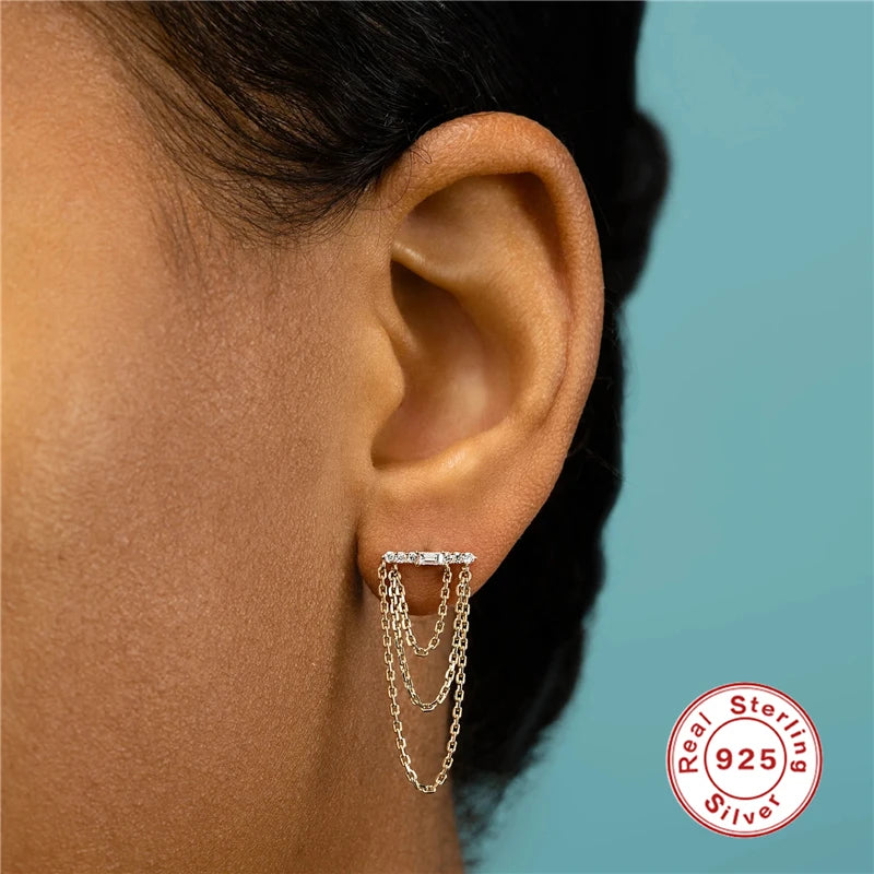 Elevate your style with these three-layer chain tassel stud earrings made of 925 sterling silver. The long design adds a touch of sophistication to any outfit.