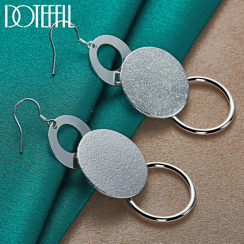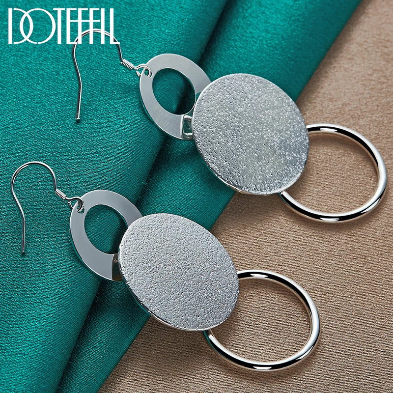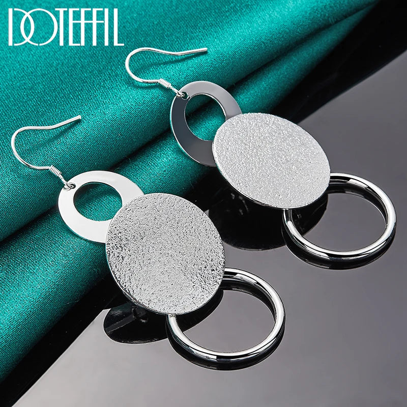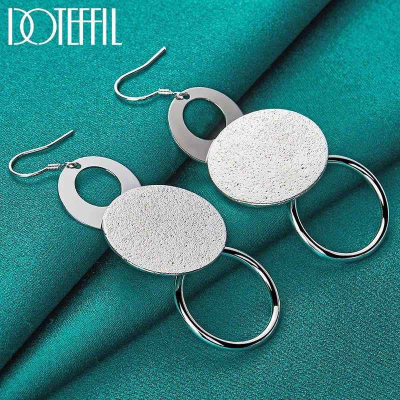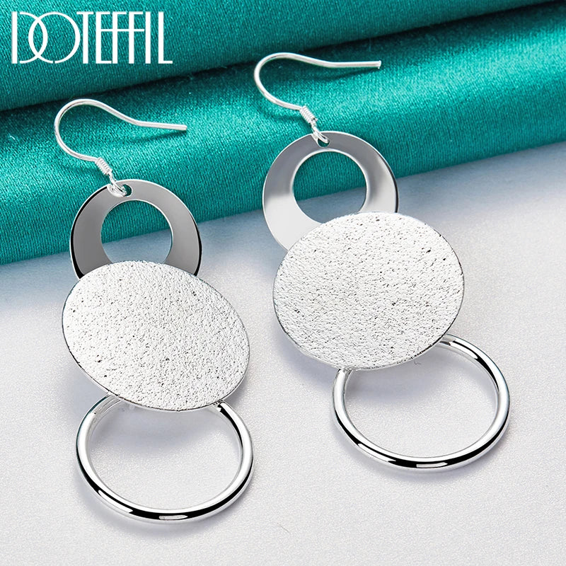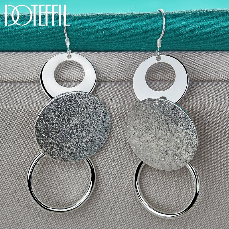 925 Silver Three Circle Matte Drop Earrings Women Party Gift