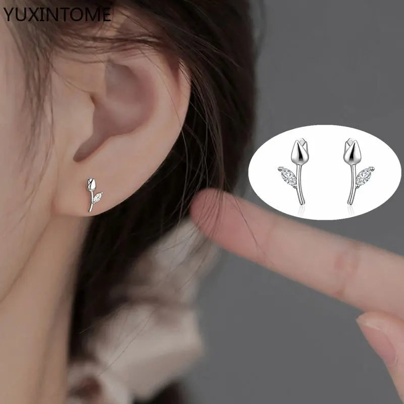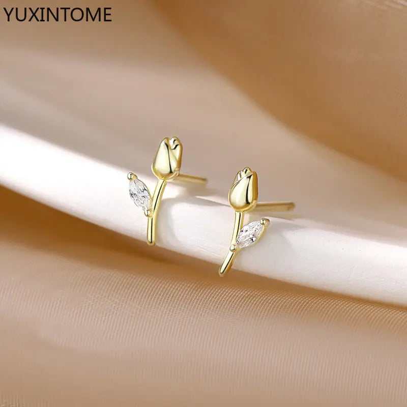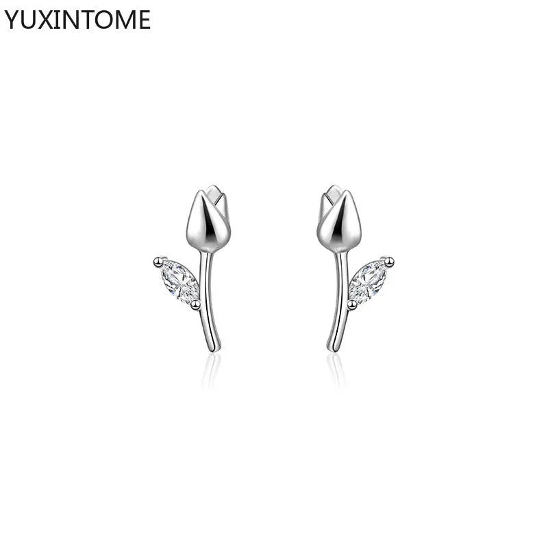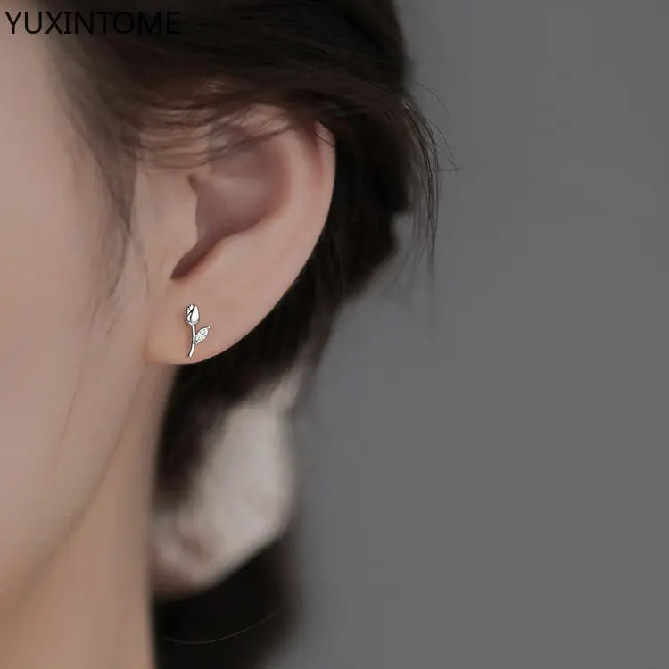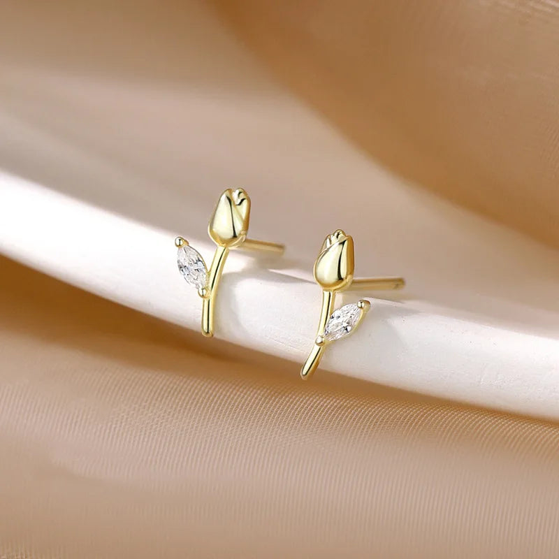 Enhance your style with these elegant tulip stud earrings. Made of 925 sterling silver, perfect for weddings or parties.