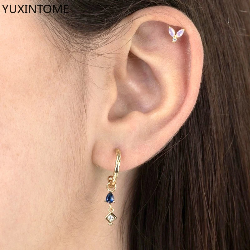 Vintage style 925 sterling silver earrings with turquoise crystal and zircon accents. Perfect for weddings or special occasions.