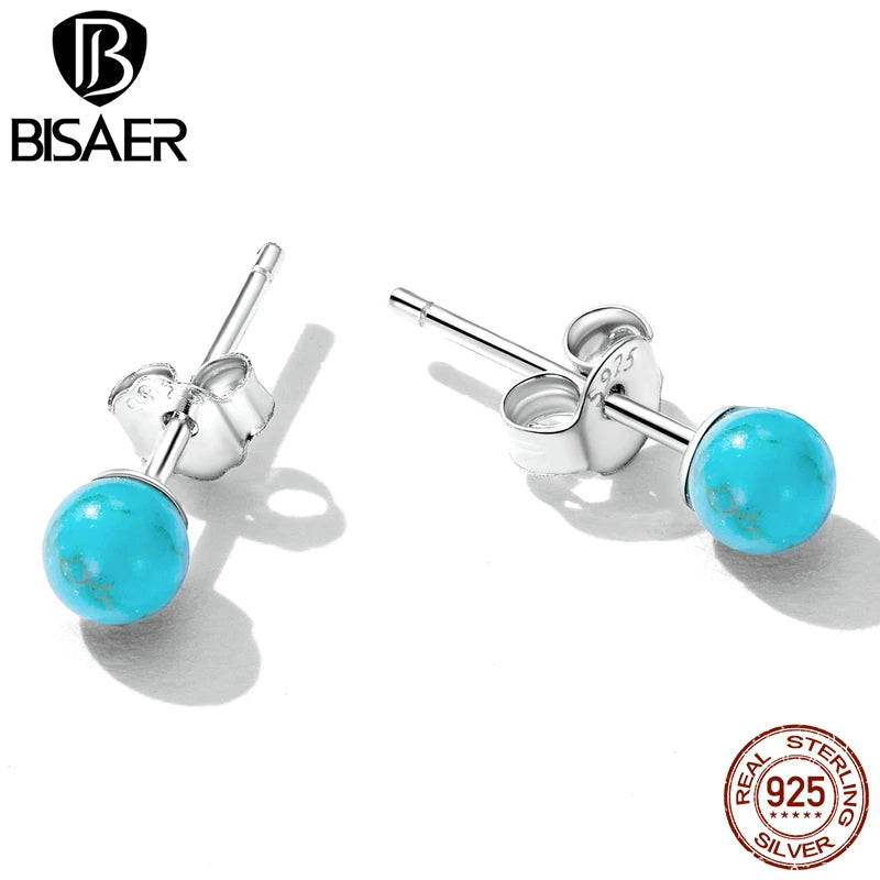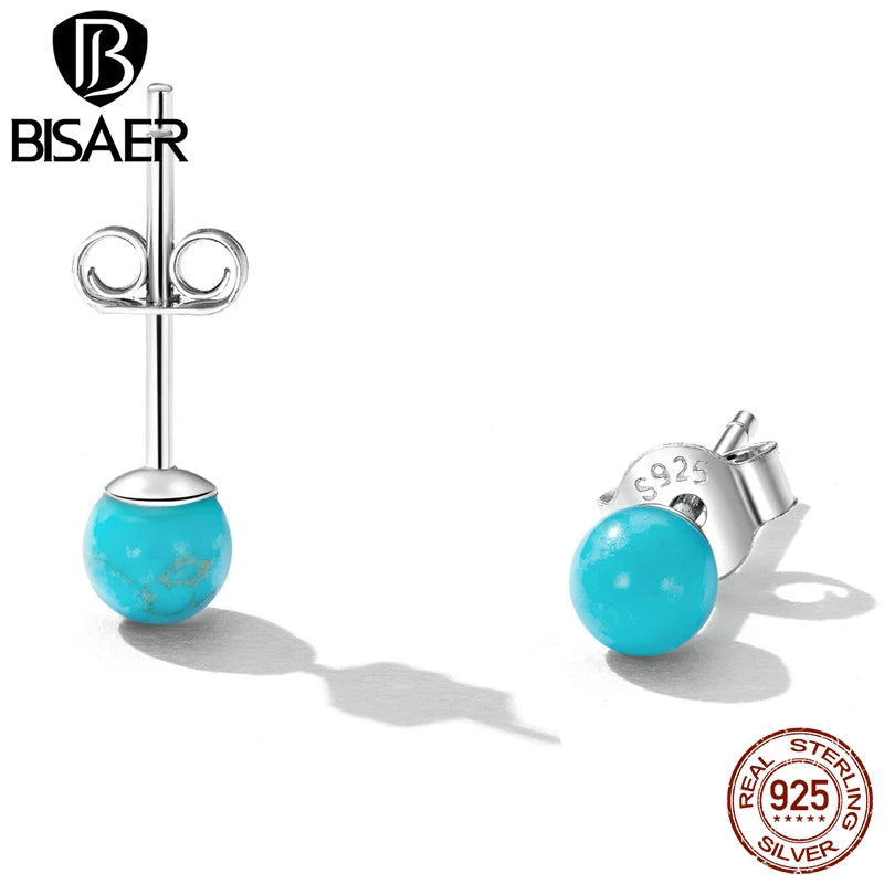 Add a touch of elegance with these stunning round turquoise stud earrings made of 925 sterling silver plated with platinum. Perfect for parties, weddings, or as a fine jewelry gift.