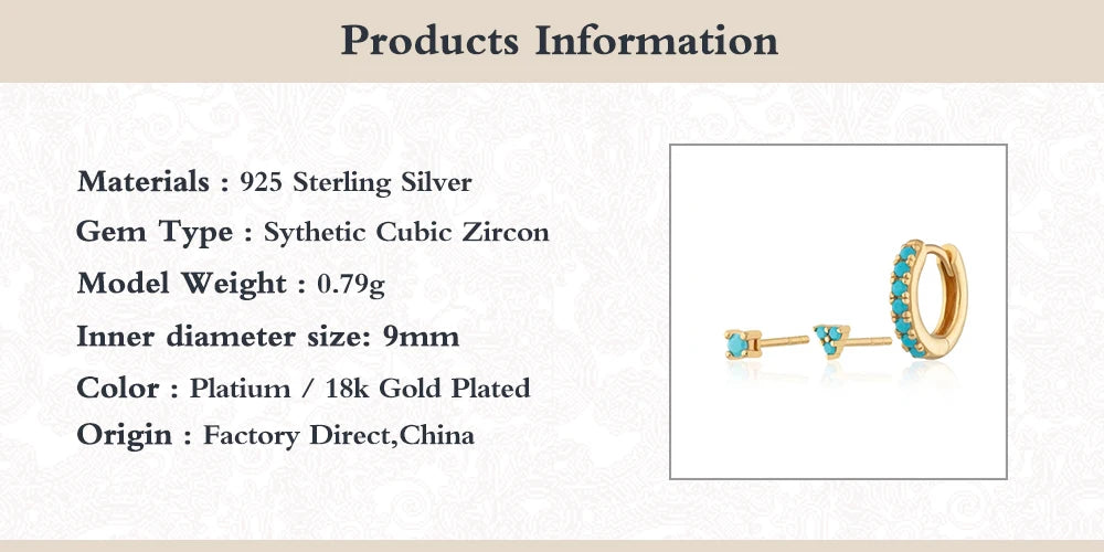 925 Silver Turquoise Zircon CZ Stud Earrings Colorful Crystal Circle Piercing