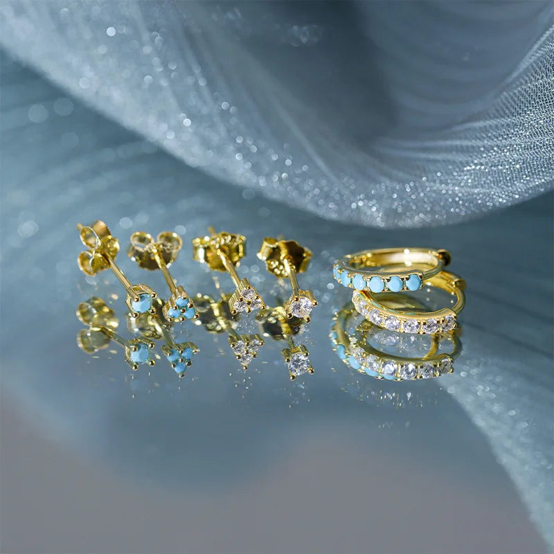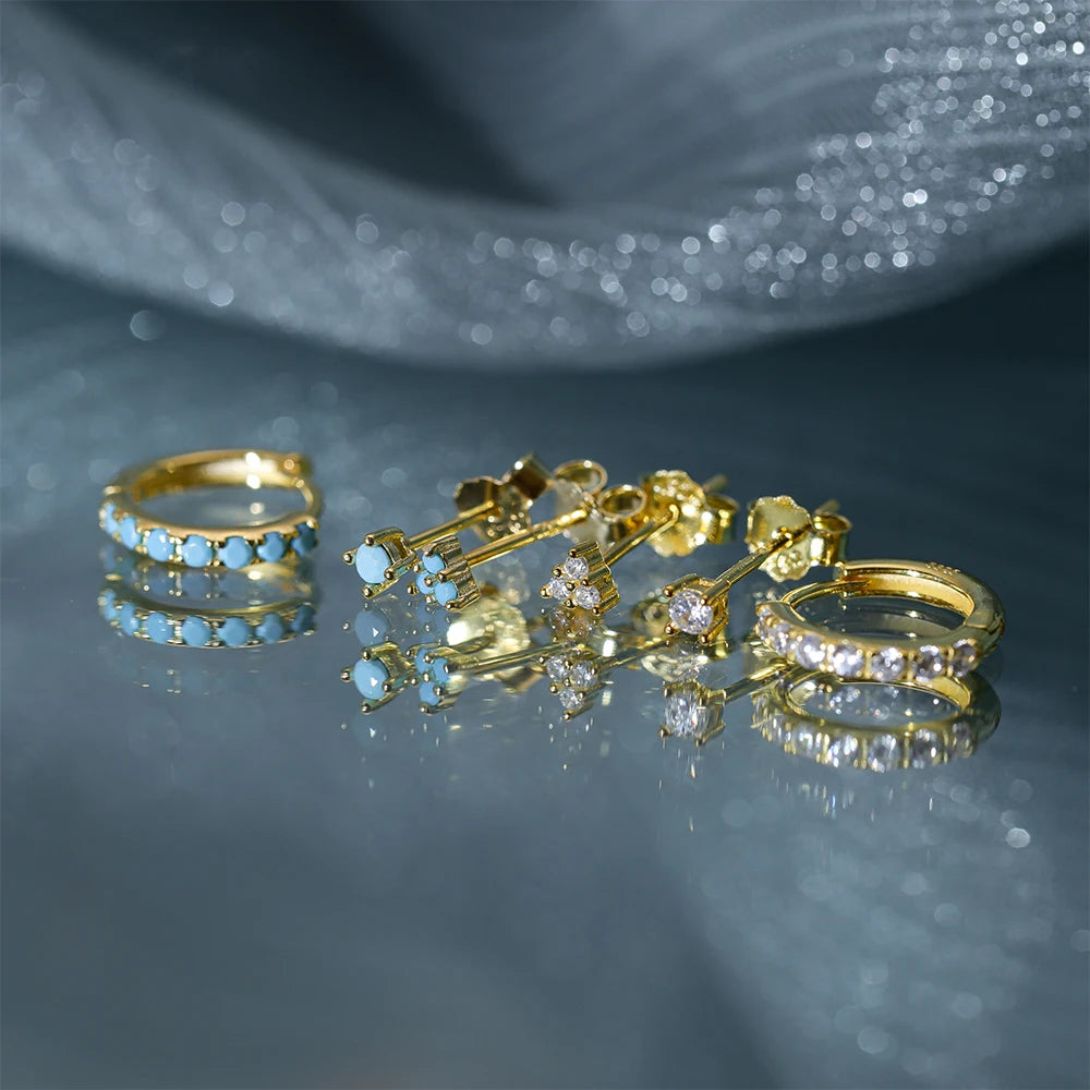 - 925 silver earrings with turquoise, zircon, and CZ stones