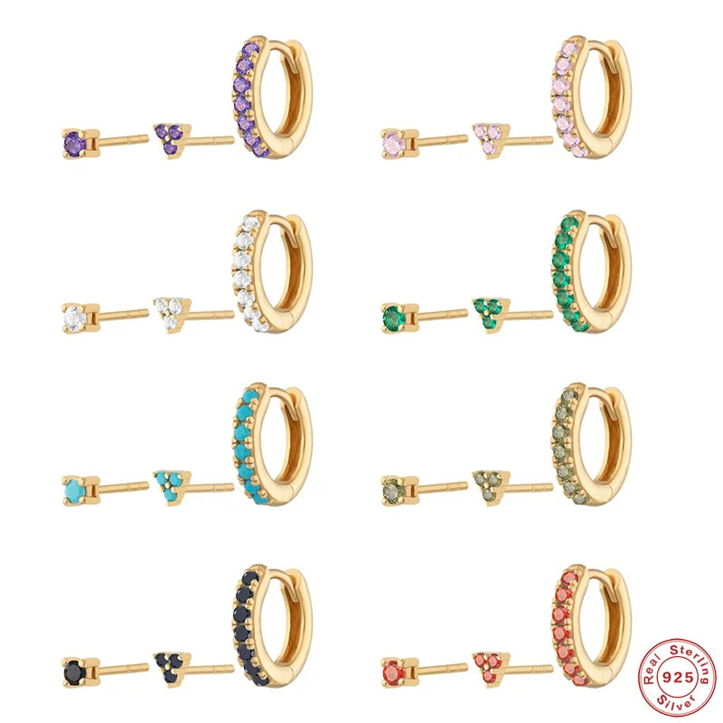 Add a pop of color to your outfit with these vibrant stud earrings featuring turquoise, zircon, and CZ stones set in a pave circle design. Made of 925 silver.