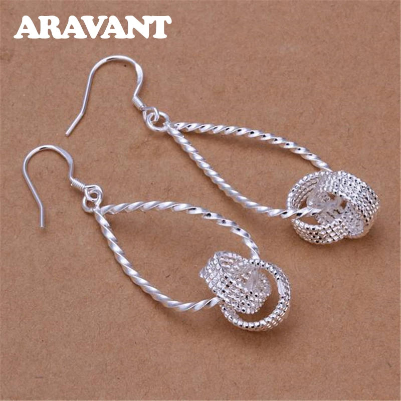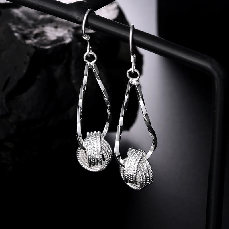- 925 silver twisted weave ball long tassel drop earrings