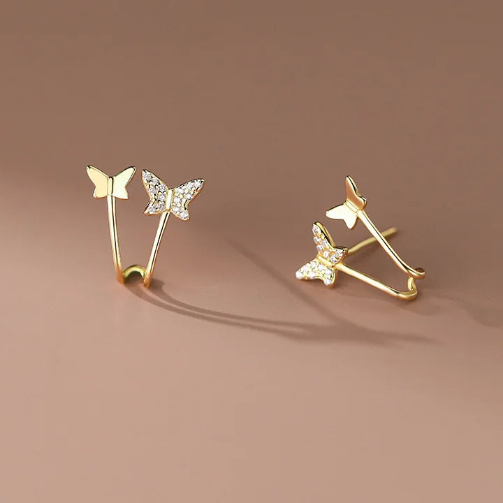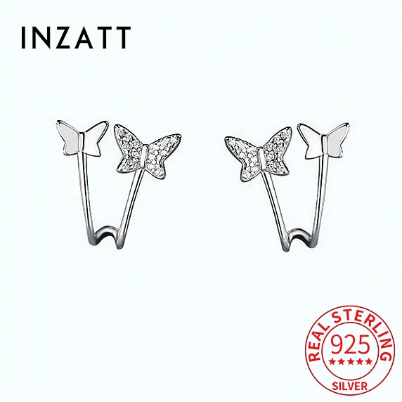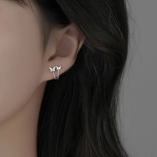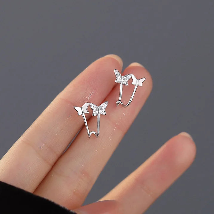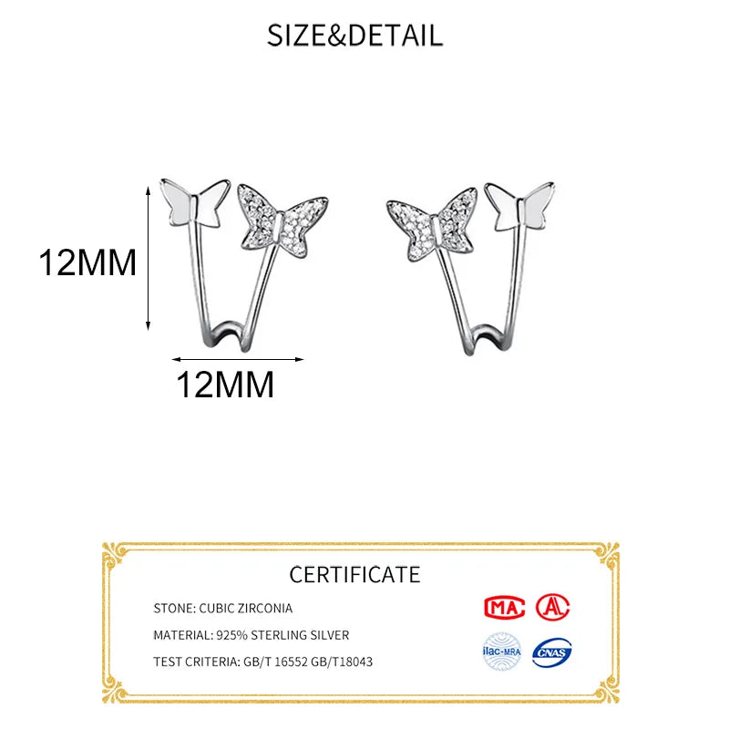 925 Silver Zircon Butterfly Stud Earrings Classic Jewelry Accessories