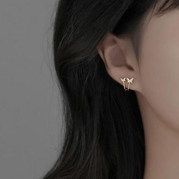 Add a touch of elegance with these sterling silver butterfly stud earrings featuring sparkling zircon stones. Perfect for a minimalist look.