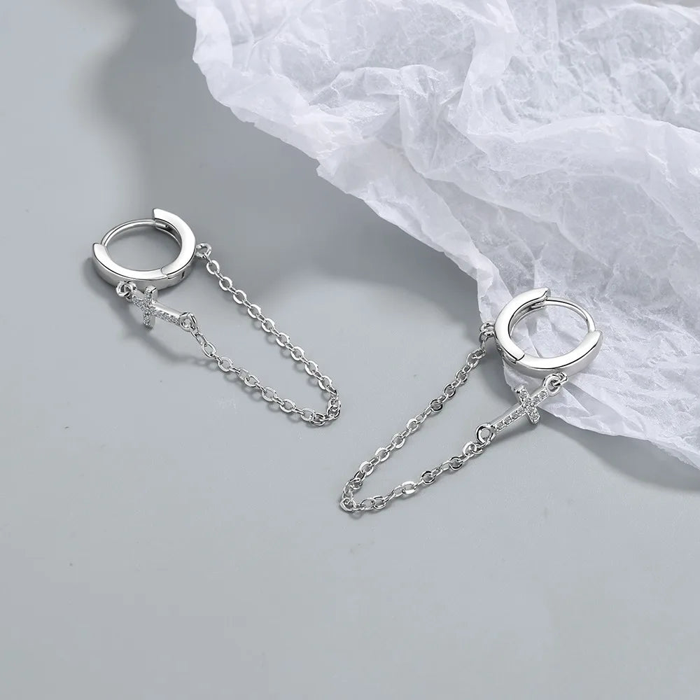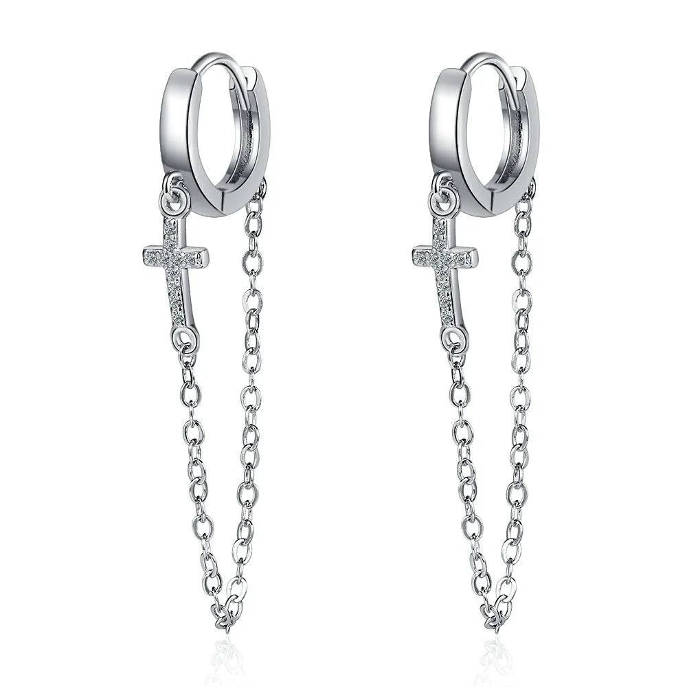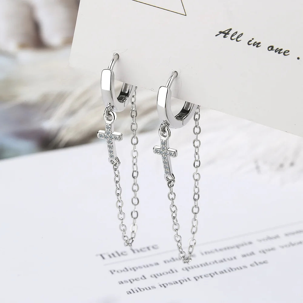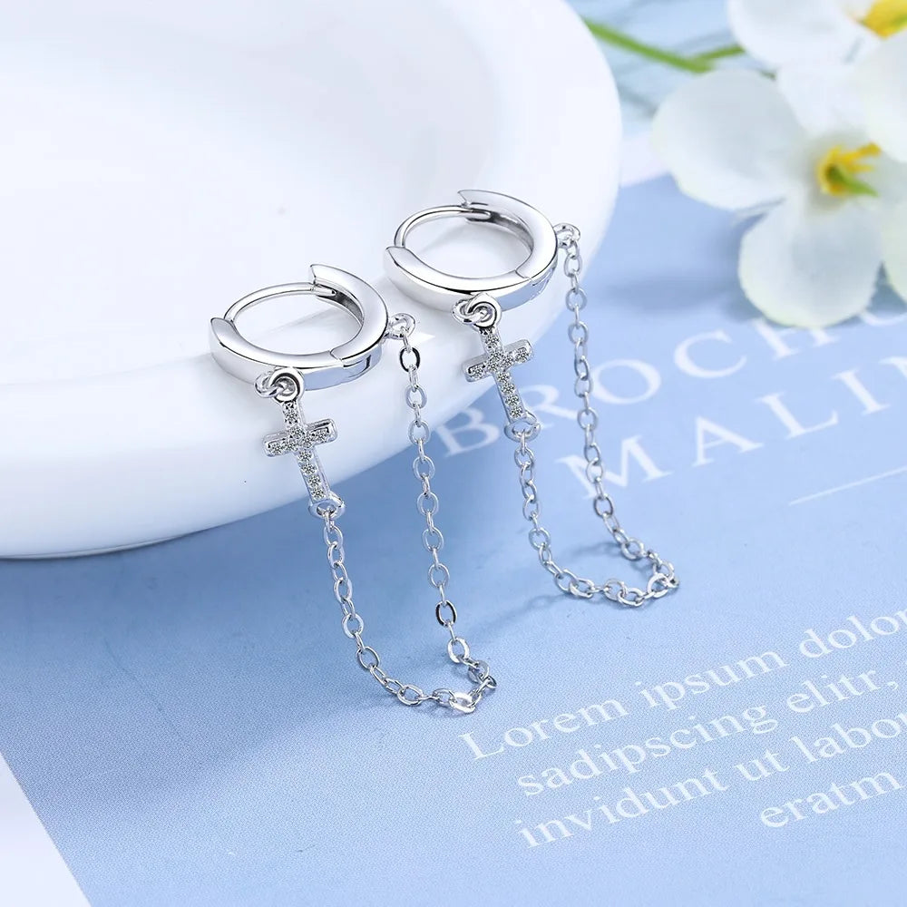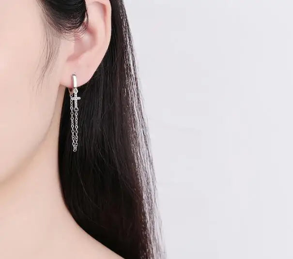 Add a touch of elegance to your look with these stunning hoop earrings featuring zircon cross and tassels. Perfect for Christmas or any special occasion.