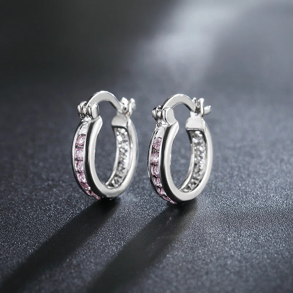 These stunning round earrings are made of 925 silver and feature sparkly zircon crystals. Perfect for adding a touch of glamour to any outfit. Makes a great gift for women.