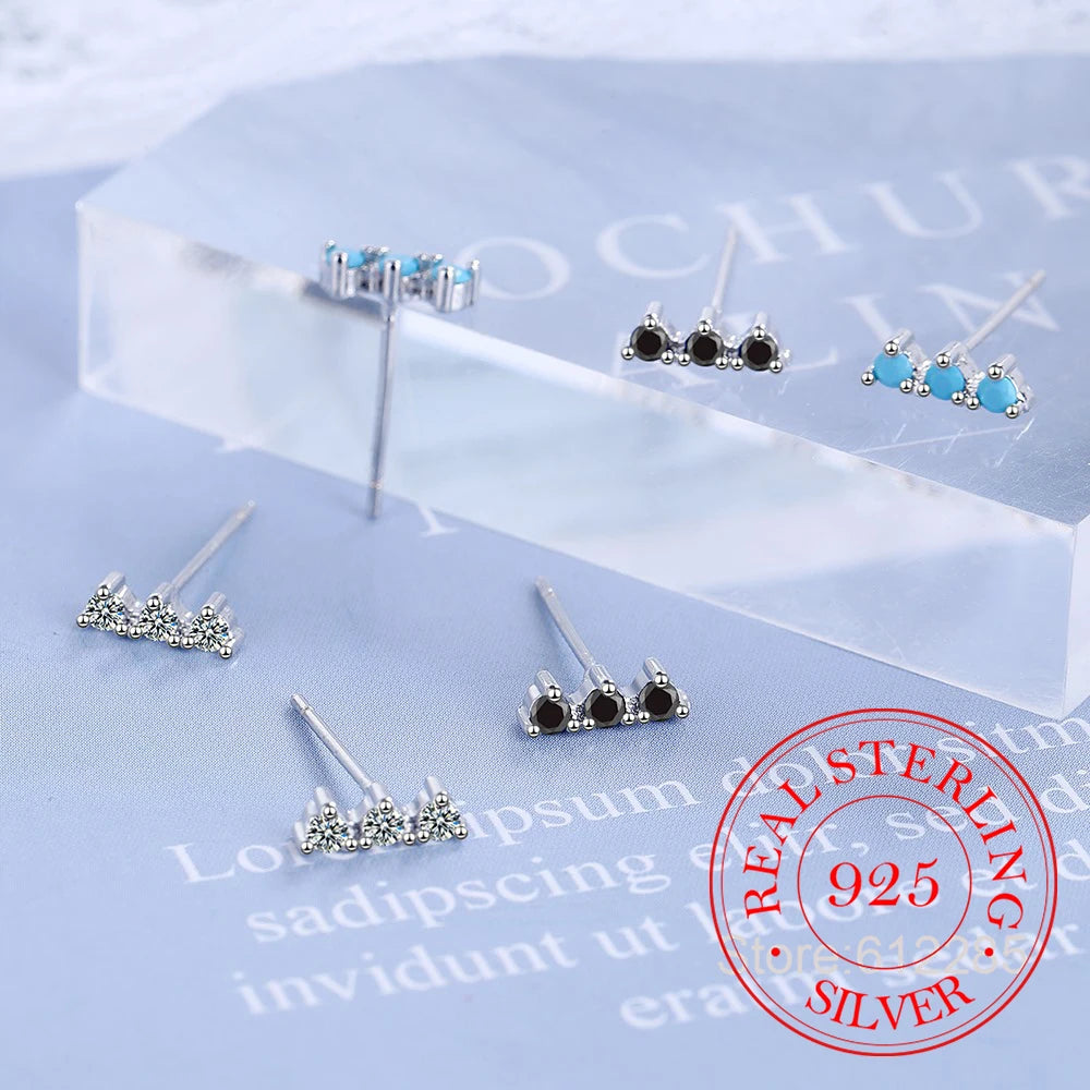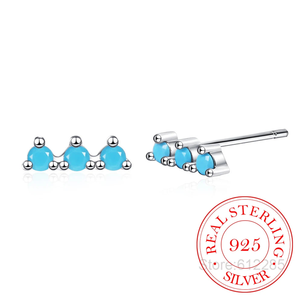 925 Silver Zircon Crystal Turquoise Stud Earrings for Women