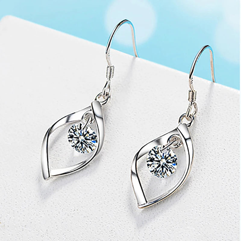 Enhance your look with these elegant drop earrings featuring a sparkling zircon gemstone. Perfect for weddings and parties.