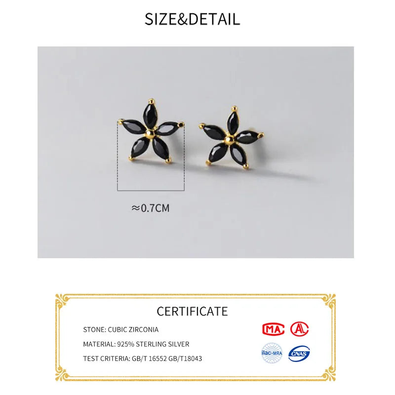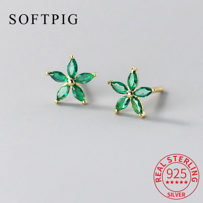 Add a pop of colour to your look with these stunning 925 sterling silver flower stud earrings featuring vibrant zircons. A delicate and minimalist accessory.