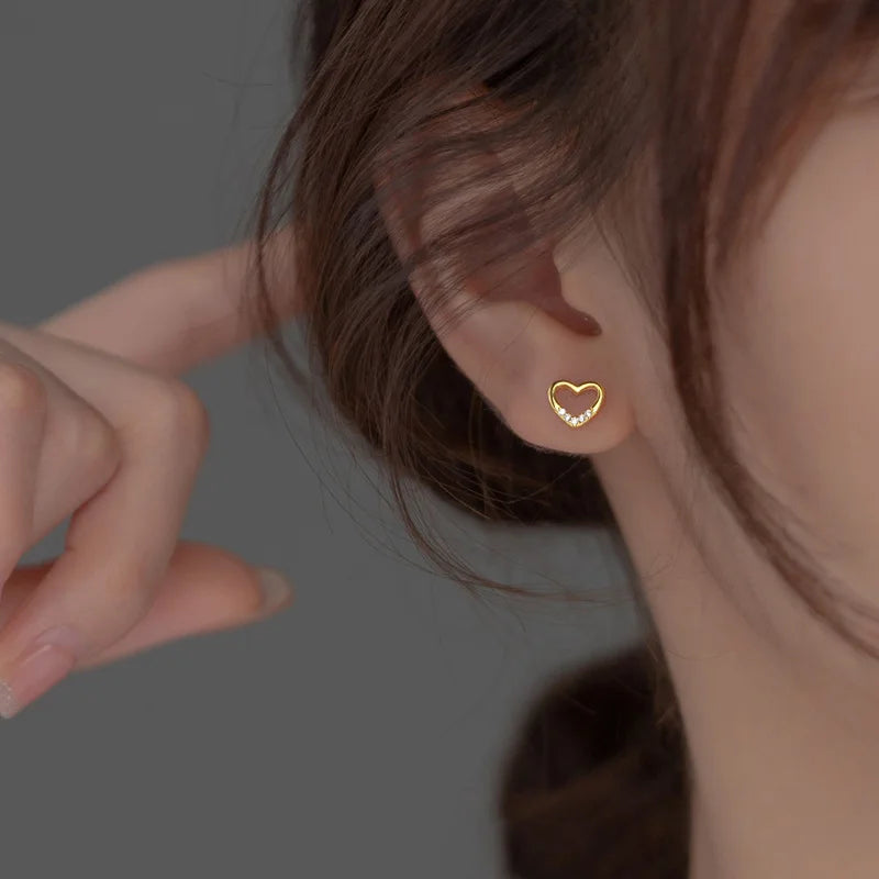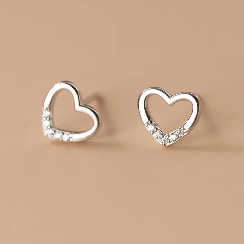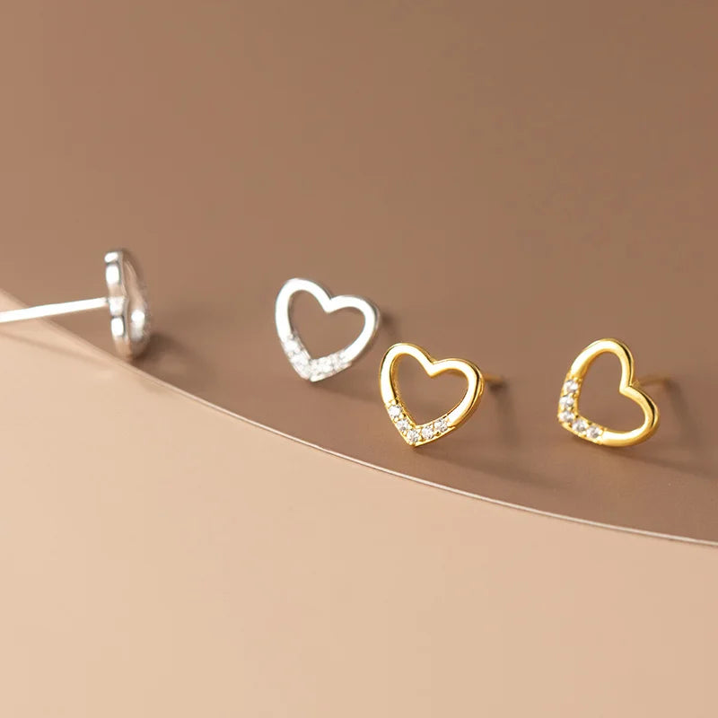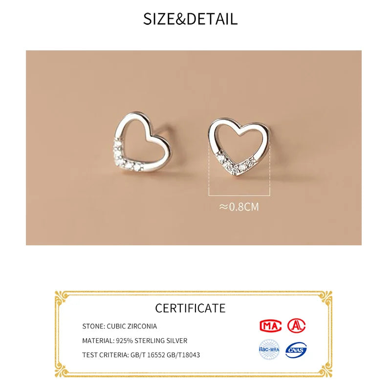 Chic and elegant 925 sterling silver hollow heart stud earrings adorned with zircon for women. Perfect for weddings, these minimalist accessories add a touch of glamour to any outfit.