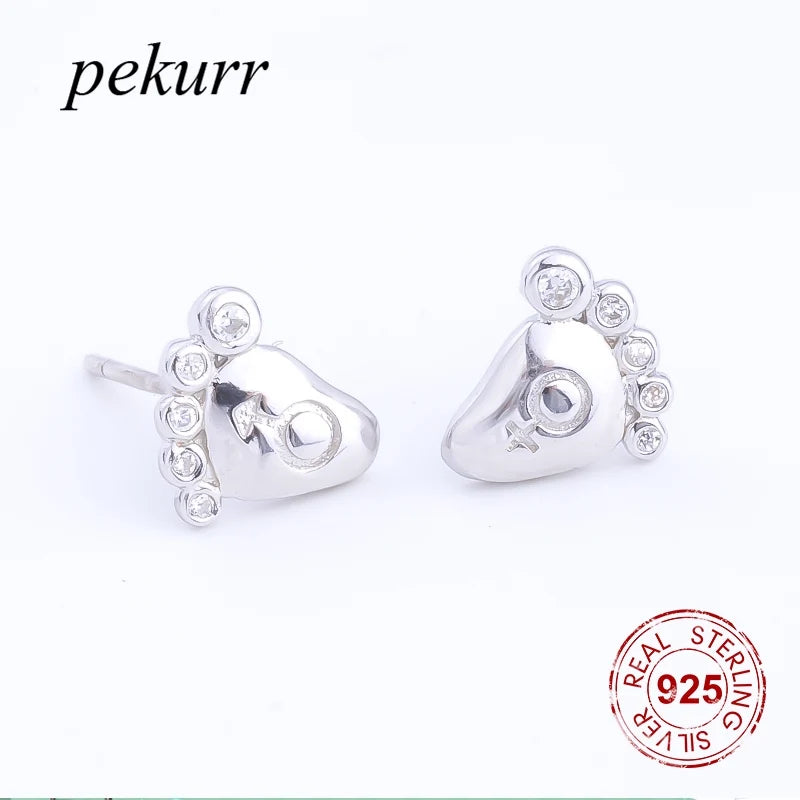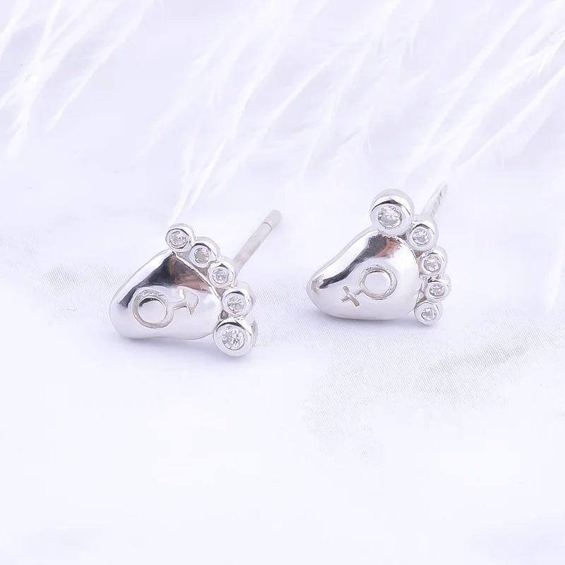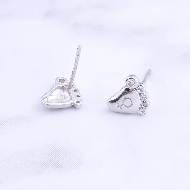 Adorn your ears with these charming little feet stud earrings made of real 925 sterling silver with zircon accents. Perfect for girls and women.