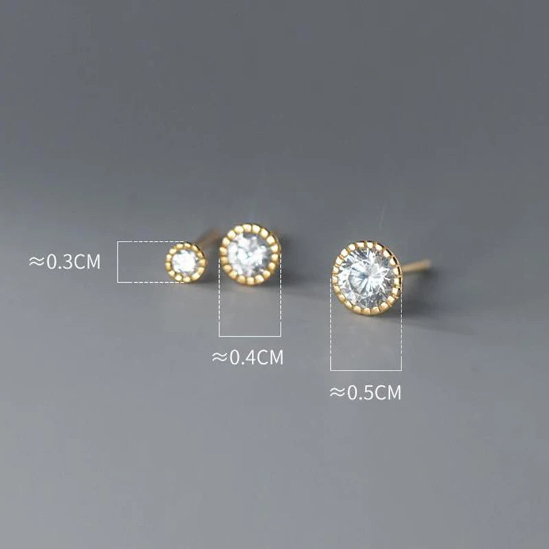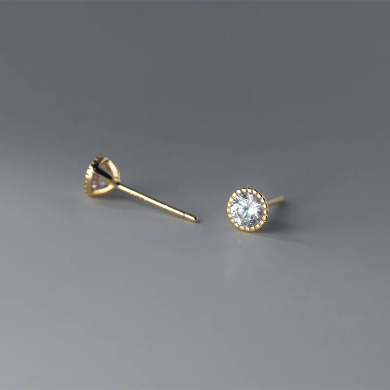 Adorn your ears with these charming round zircon stud earrings. Made of 925 sterling silver, these earrings are perfect for daily wear and make a sweet gift for women and teens.