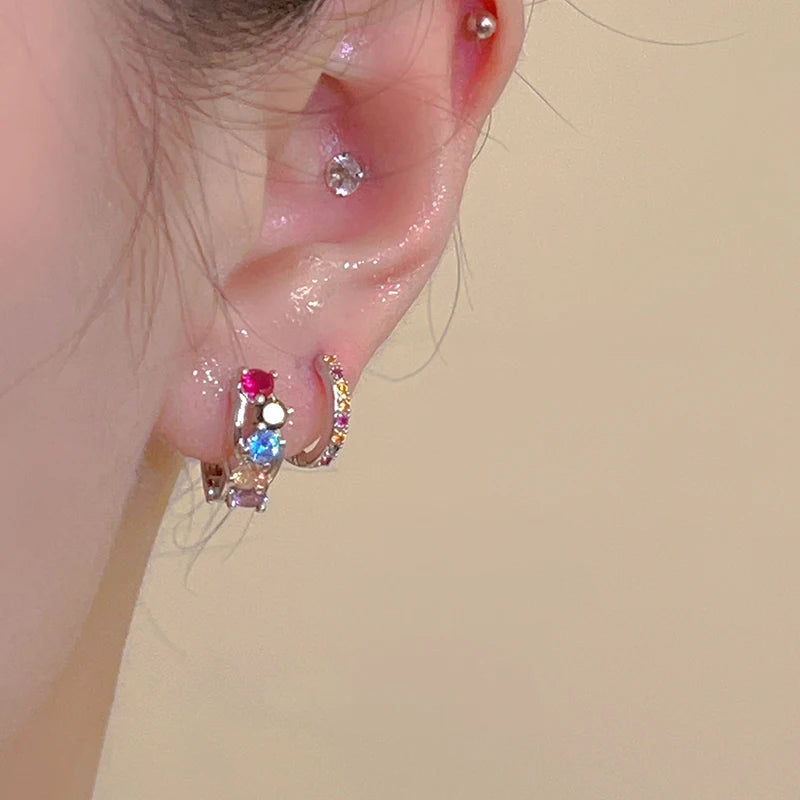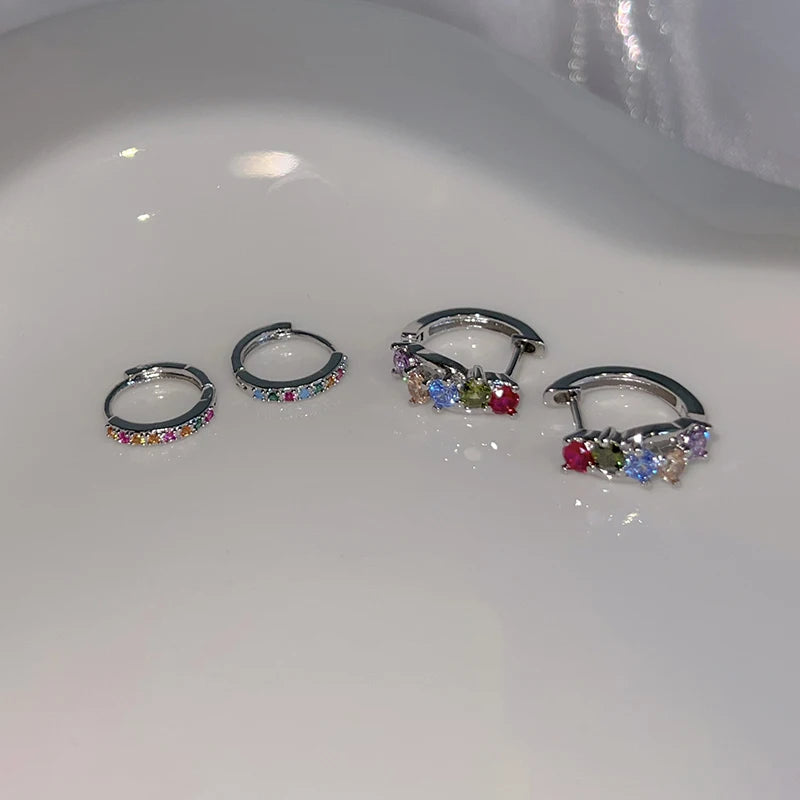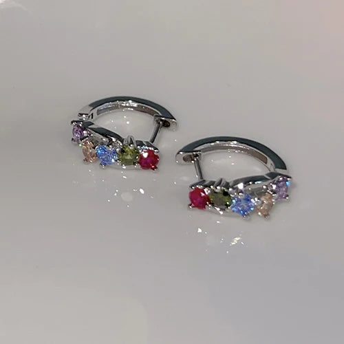 These exquisite stud earrings feature colored zircon stones set in 925 sterling silver. Perfect for parties or everyday wear, these minimalist earrings add a touch of elegance to any outfit.