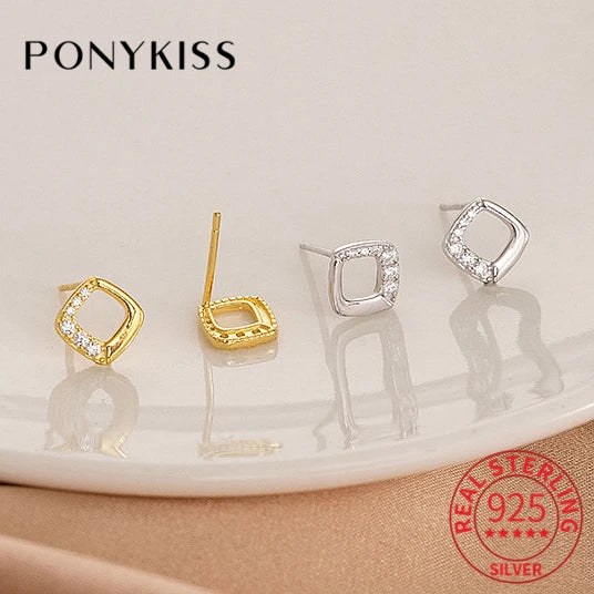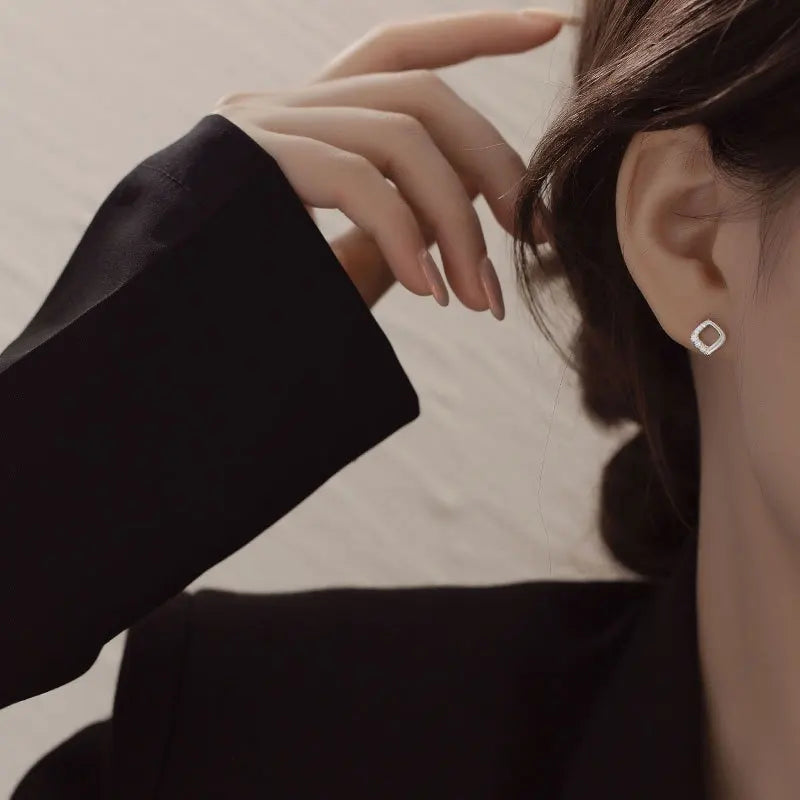 Chic and elegant hollow square earrings crafted from real 925 sterling silver with sparkly zircon stones. Perfect for adding a touch of style to your office or casual outfits.
