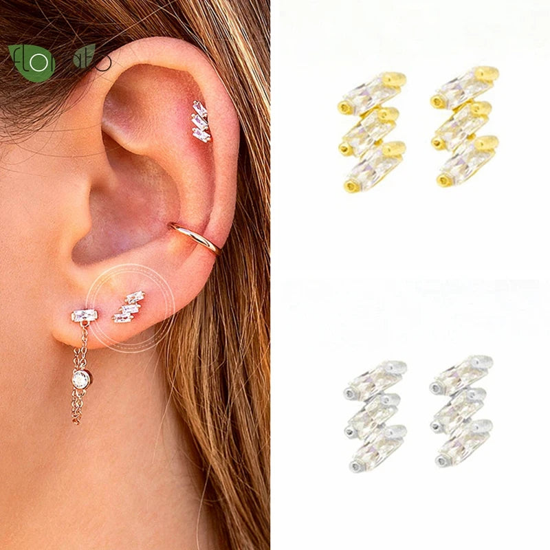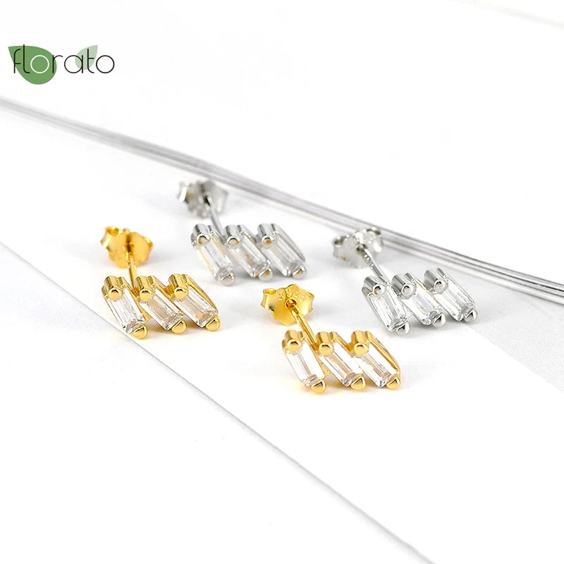Add a touch of elegance to your look with these stunning 925 silver stud earrings featuring sparkling zircon stones.
