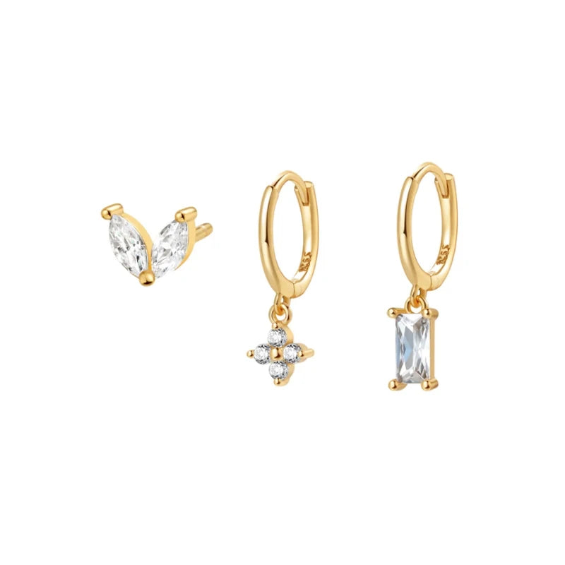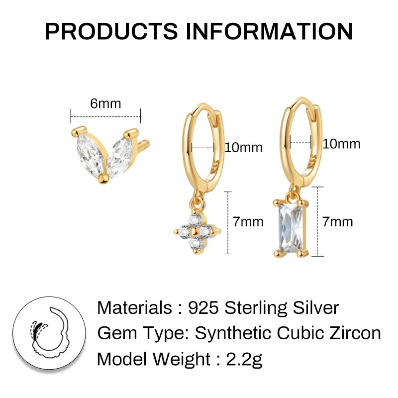 This set includes 3 pairs of stunning stud earrings made of 925 sterling silver with zircon stones. Perfect for women and girls to elevate their style with a touch of elegance.