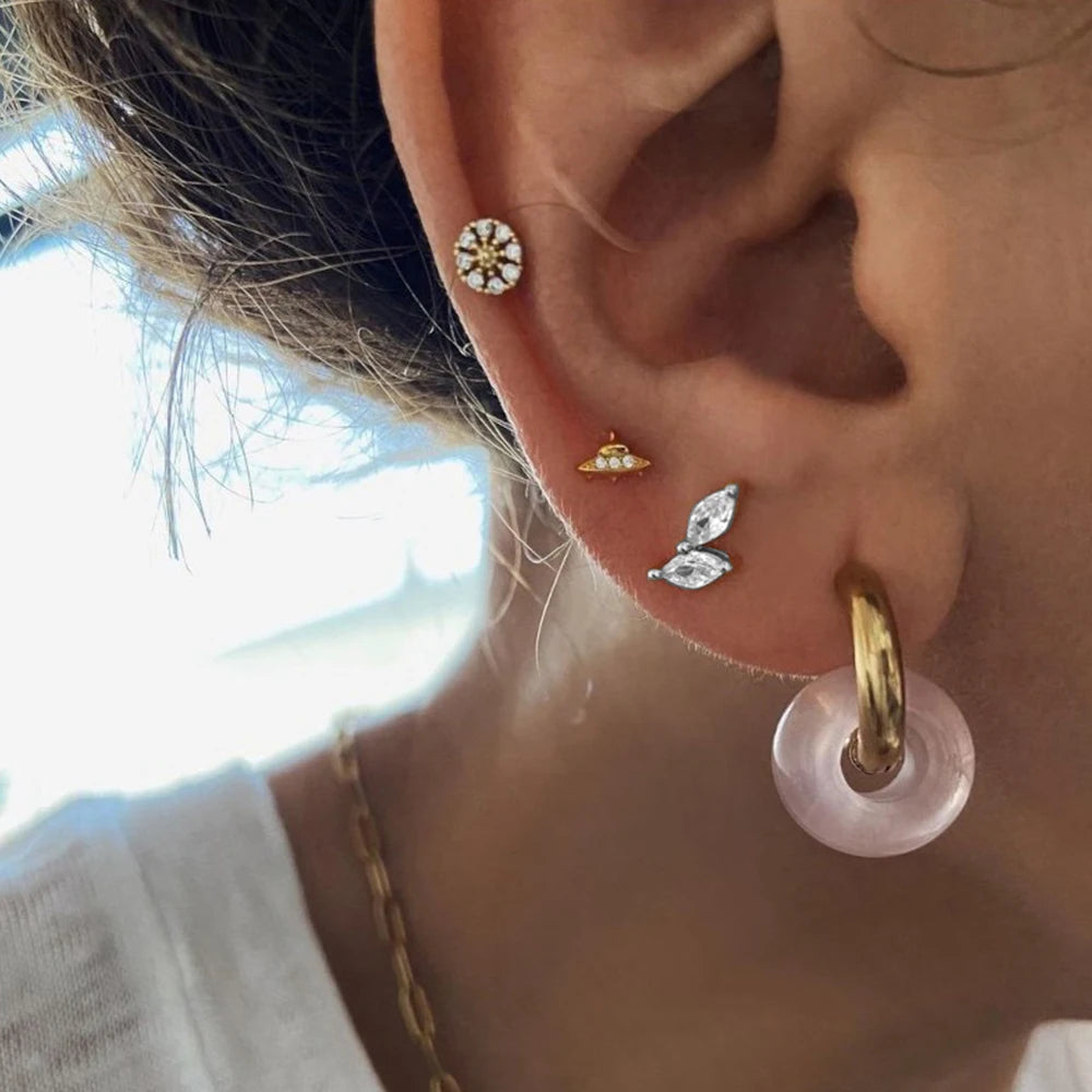 These stunning 925 silver stud earrings feature sparkly zircon stones. They are perfect for adding a touch of elegance and style to your look.