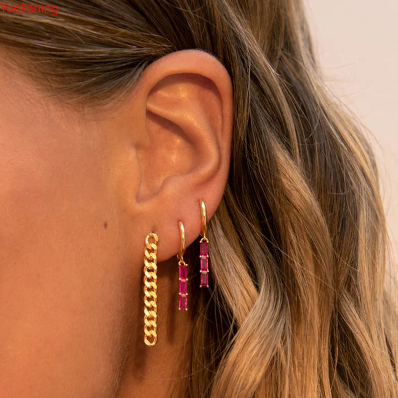 925 Silver Zircon Tassel Chain Hoop Earrings Party Stud Jewelry