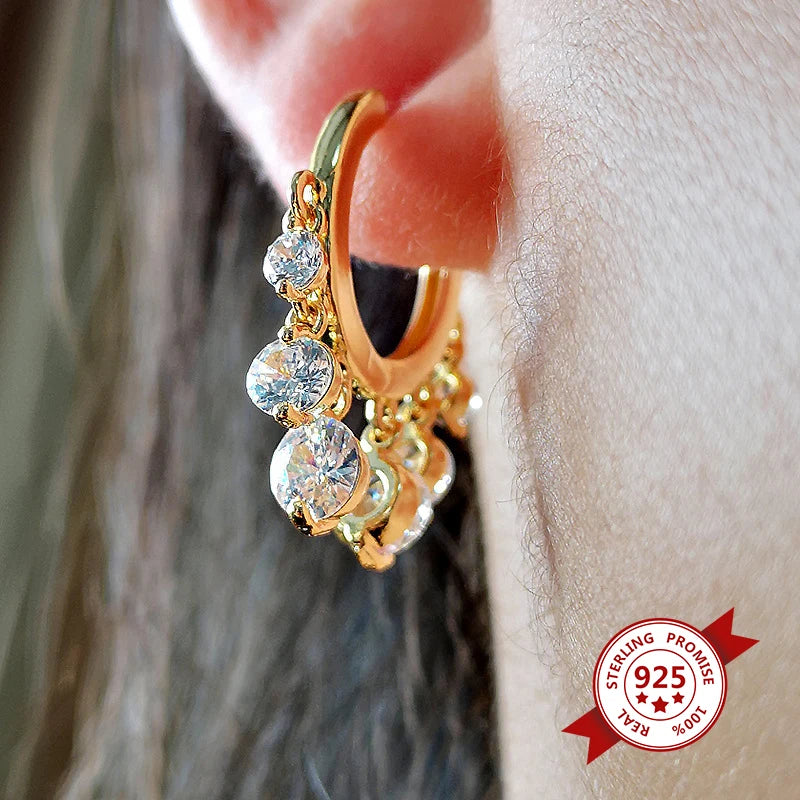 Add a touch of glamour to your look with these elegant hoop earrings featuring zircon tassel star design. Perfect for weddings and special occasions.