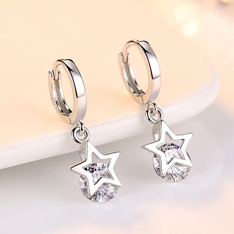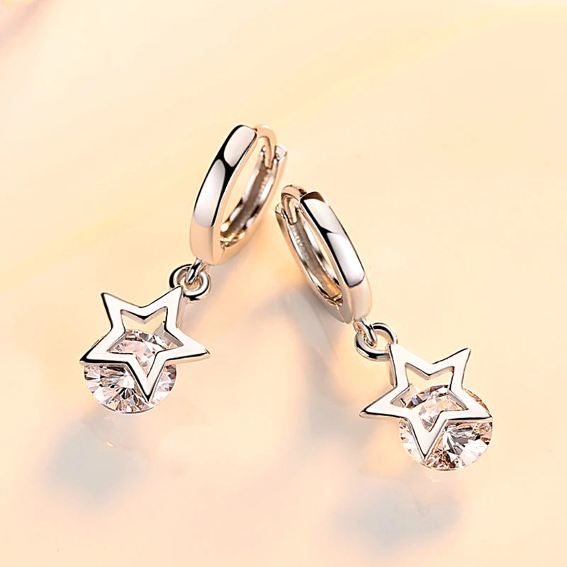These elegant stud earrings feature zirconia star design, perfect for wedding or party wear. Made of high-quality 925 sterling silver.